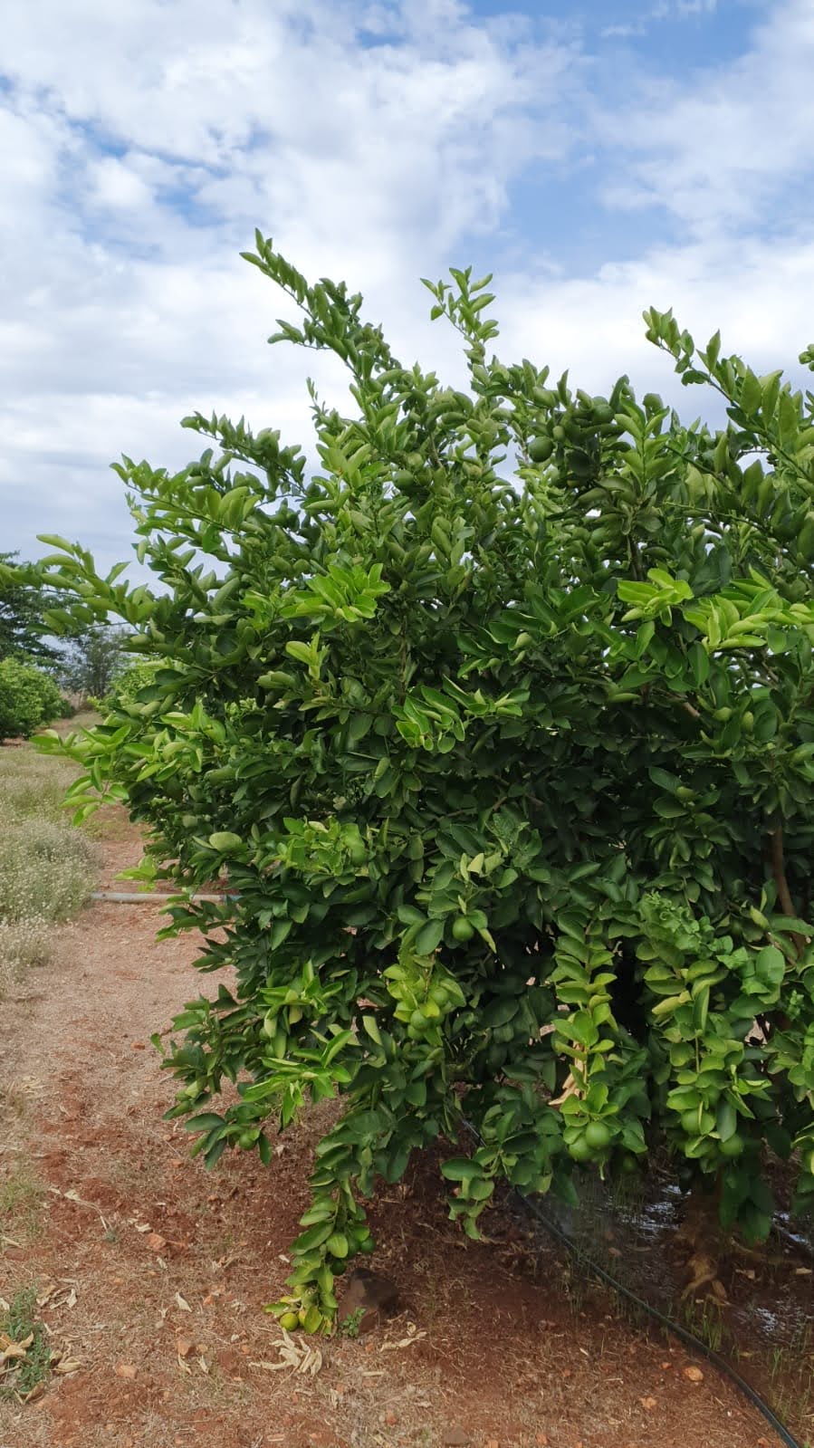 O manejo empregado por Seu Eudes tem como base induzir a produção a partir da poda. “A poda que eu tinha feito nele era leve, daqueles ramos ladrões. A poda mais forte está sendo agora, acredito que daqui a 90 dias começo a colher. Mas no meio vai ficar muito limão ainda, e passa uns 40 a 45 dias colhendo”. O produtor não dispensa a utilização de tecnologias de irrigação que agregam vantagens, como a feritirirgação, levando nutrientes à planta, diluídos na água. “Uso o cloreto purificado. São duas mangueiras, uma para o microaspersor e uma para o gotejo, numa carreira só de limão. Também adubei com muita cama de galinha no início, que foi no inverno”, explica. O produtor conta que quando os limoeiros completaram 1,5 anos, ele começou a usar um fertilizante foliar na fertirrigação, para influenciar a floração, estágio de onde surgem os frutos.