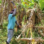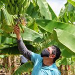 “Porque a banana da terra aqui, na nossa região, não tinha e vinha da Bahia, de fora, muito cara. Como eu tinha a [banana] prata, eu disse: é uma banana que eu vou fazer um teste aqui na minha área. Daí comprei ‘10 filhas’ [mudas que nascem ao pé da bananeira adulta], plantei e deu certo. Depois eu ampliei a plantação e tá dando bem ela”, avaliou Francisco de Araújo. O agricultor contabiliza que a produção da banana-da-terra já está compensando o investimento e a intenção é aumentar o tamanho da área ocupada pelo fruto, em seu lote de 8,5 hectares. “Eu já cheguei a tirar cachos de 45 kg e já cheguei a tirar aqui de 50 a 52 caixas de banana por semana, só dá terra”, comemorou o irrigante.