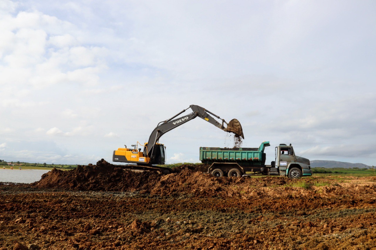 Obras do Pró-Campo continuarão ampliando leito da barragem do Ribeira até que o nível do reservatório permita o trabalho das máquinas