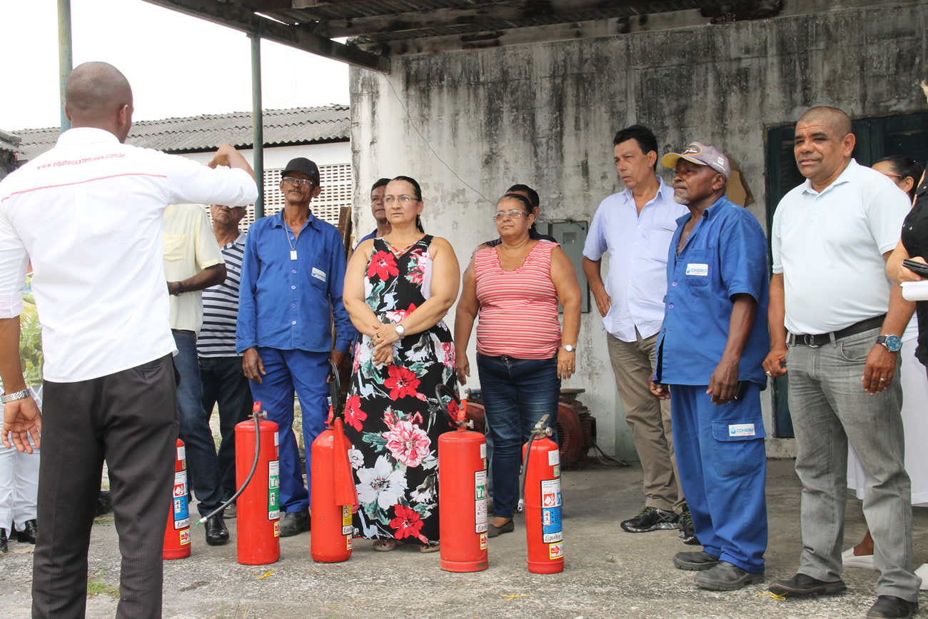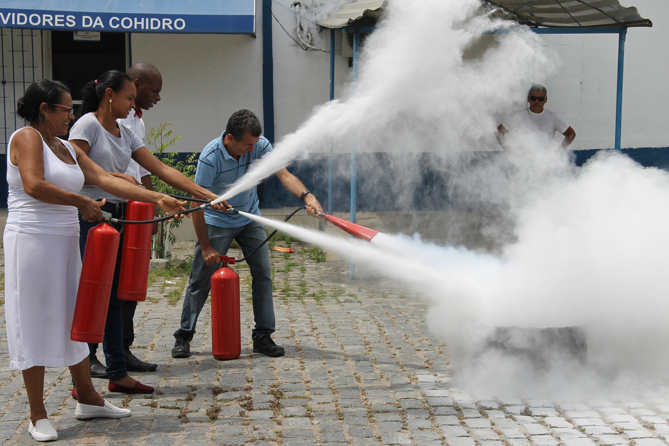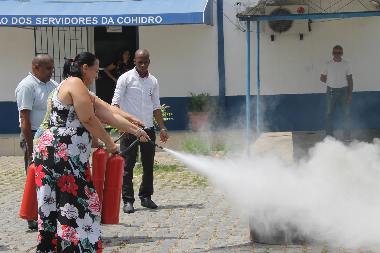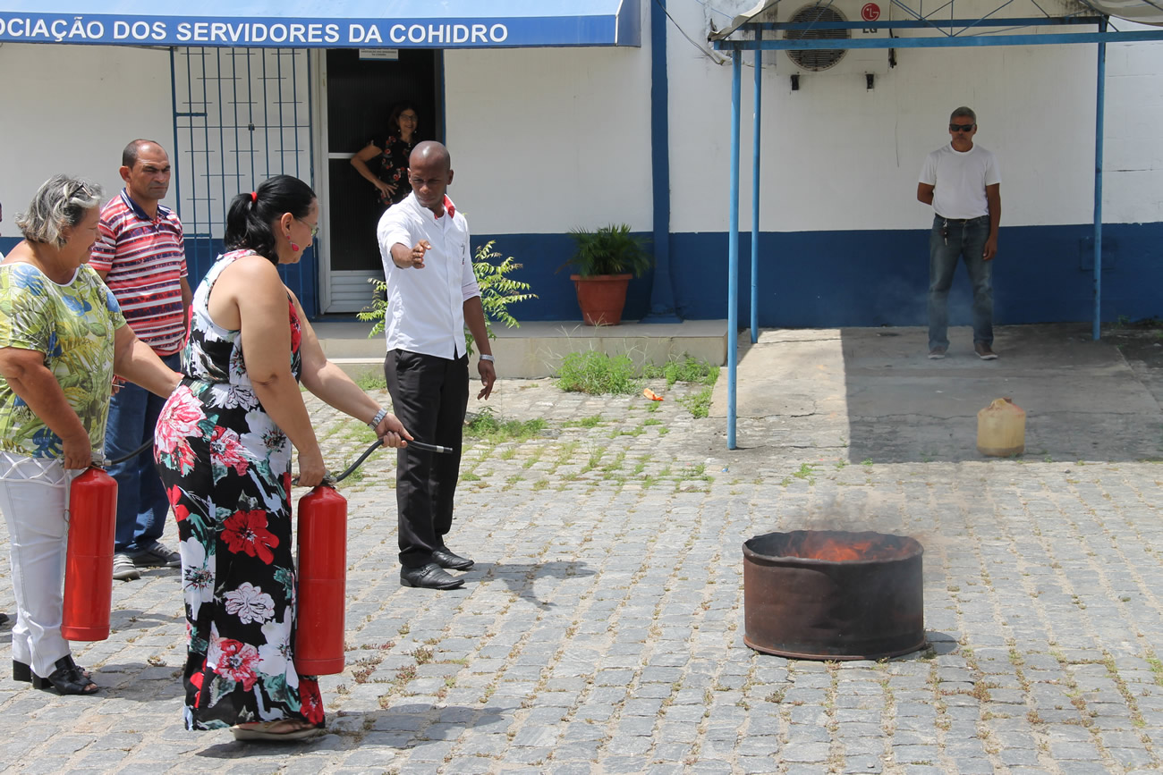 Na manhã desta sexta-feira, 23, funcionários da Companhia de Desenvolvimento de Recursos Hídricos de Sergipe (Cohidro), participaram de uma palestra se treinamento prático sobre noções de prevenção de incêndios. A ação aconteceu na oficina da empresa e foi ministrada pelo bombeiro civil e técnico em segurança, Ismael Santos. A equipe treinada faz parte da Comissão Interna de Acidentes (Cipa).