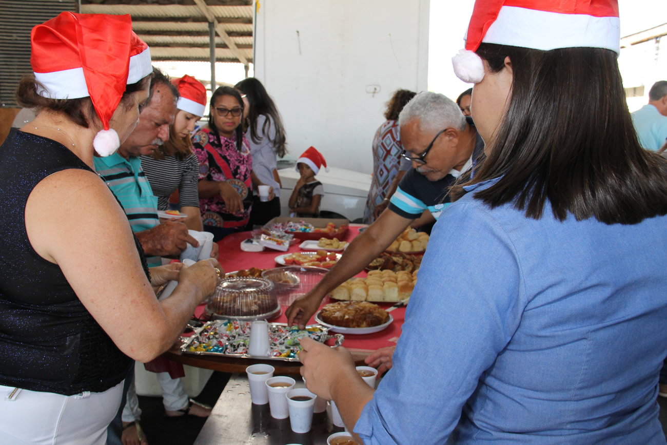 Confraternização de Natal realizada hoje pelos funcionários na Sede da Cohidro, idealizada pelo eterno Papai Noel Clóvis ‘O Sonhador’. Teve sorteio de presentes recheados de mensagens de felicitações, finalizando com um lanche especial.
