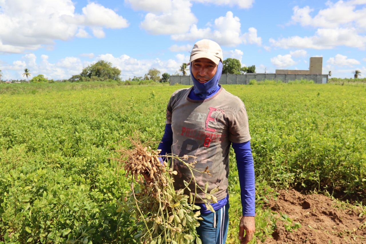 Renilson de Jesus é irrigante no perímetro Piauí e há mais de um mês vem fazendo a colheita do amendoim plantado. As colheitas das suas lavouras geram mão de obra para dez pessoas por vez, além do irrigante.