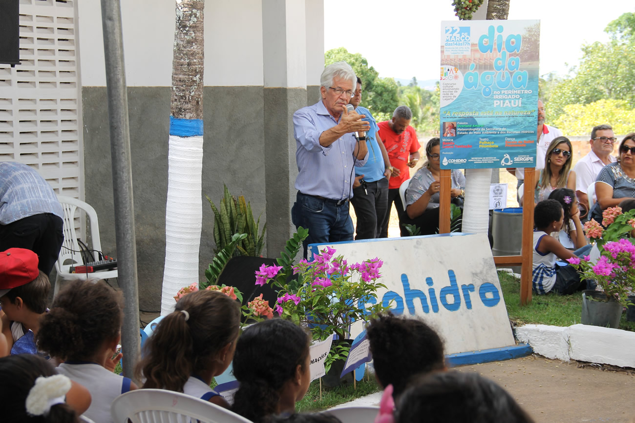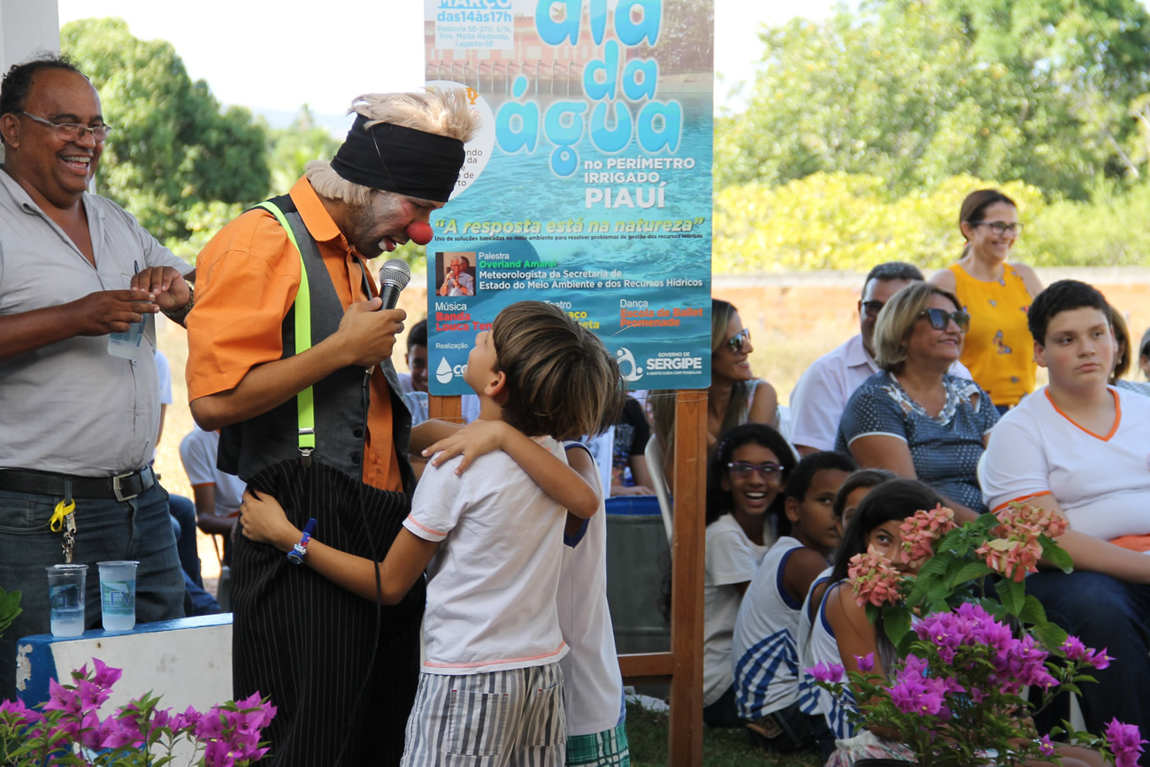 Mais um Dia Mundial da Água, celebrado em 22 de março, motivou o Perímetro Irrigado Piauí em novamente chamar a comunidade às suas instalações, na intenção da conscientização para a preservação do Meio Ambiente e dos recursos hídricos, visando a nossa sobrevivência e a continuidade da produção agrícola. Foi uma tarde que reuniu cerca de 300 estudantes da educação fundamental do município de Lagarto. Houve apresentação de palhaço, música, mágica, concurso cultural e a instrutiva palestra do climatologista Overland Amaral.