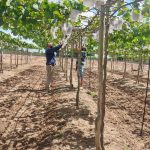 Embora no perímetro da Cohidro em Canindé de São Francisco a produção de uva já esteja em nível comercial, no perímetro de Lagarto a cultura é uma novidade. Willian Domingos acompanha de perto, e aprende com a evolução dos parreirais. “Nós temos alguns desafios aqui e trouxemos três variedades: a Vitória com os porta-enxertos 313, e Paulsen, e a Itália. Porém a Itália terá de ser eliminada, por não ter produzido nada e com grandes problemas com doença”, avalia Willian. Para ele, a dificuldade no cultivo da uva é a umidade. “Aqui chove em torno de 1.000 a 1.300 mm/ano, com isso, muitas doenças surgem e o controle se torna mais complicado”, explicou o técnico. Ainda assim, ele acredita que a cultura promete bons resultados, se empregada a tecnologia certa nas videiras plantadas há cerca de um ano e meio.