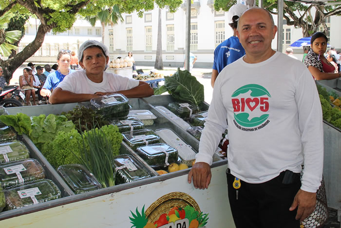 Dois agricultores são irrigantes do Perímetro Irrigado Piauí da Cohidro em Lagarto, trazendo à Feira hortaliças orgânicas e derivados de mandioca produzidos em seus lotes no pólo de irrigação. Uma terceira banca era compartilhada por agricultores que constituem a Associação Sergipana de Orgânicos (Bio5), formada por produtores orgânicos ou que têm produções com aptidão agroecológica, instalados no Perímetro Irrigado Califórnia, em Canindé de São Francisco. De lá vieram hortaliças, frango e ovos caipiras, além de doces caseiros.