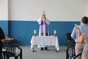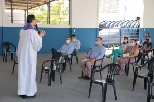 Realizada na última sexta-feira (18), a tradicional Missa de Natal na Cohidro marcou também a celebração eucarística do fim do ano dos funcionários da companhia, momento de agradecer o que foi considerado benção em 2020 e rogar por dias melhores em 2021. Foi aproveitado o amplo espaço da recém revitalizada garagem da sede da empresa em Aracaju, para dispor altar e cadeiras com a distância exigida, álcool 70% – via totem gentilmente cedido pelo Sindicato dos Trabalhadores na Indústria da Purificação e Distribuição de Água (Sindisan) – e a exigência do uso de máscaras respiratórias; conforme os critérios de prevenção ao coronavírus.