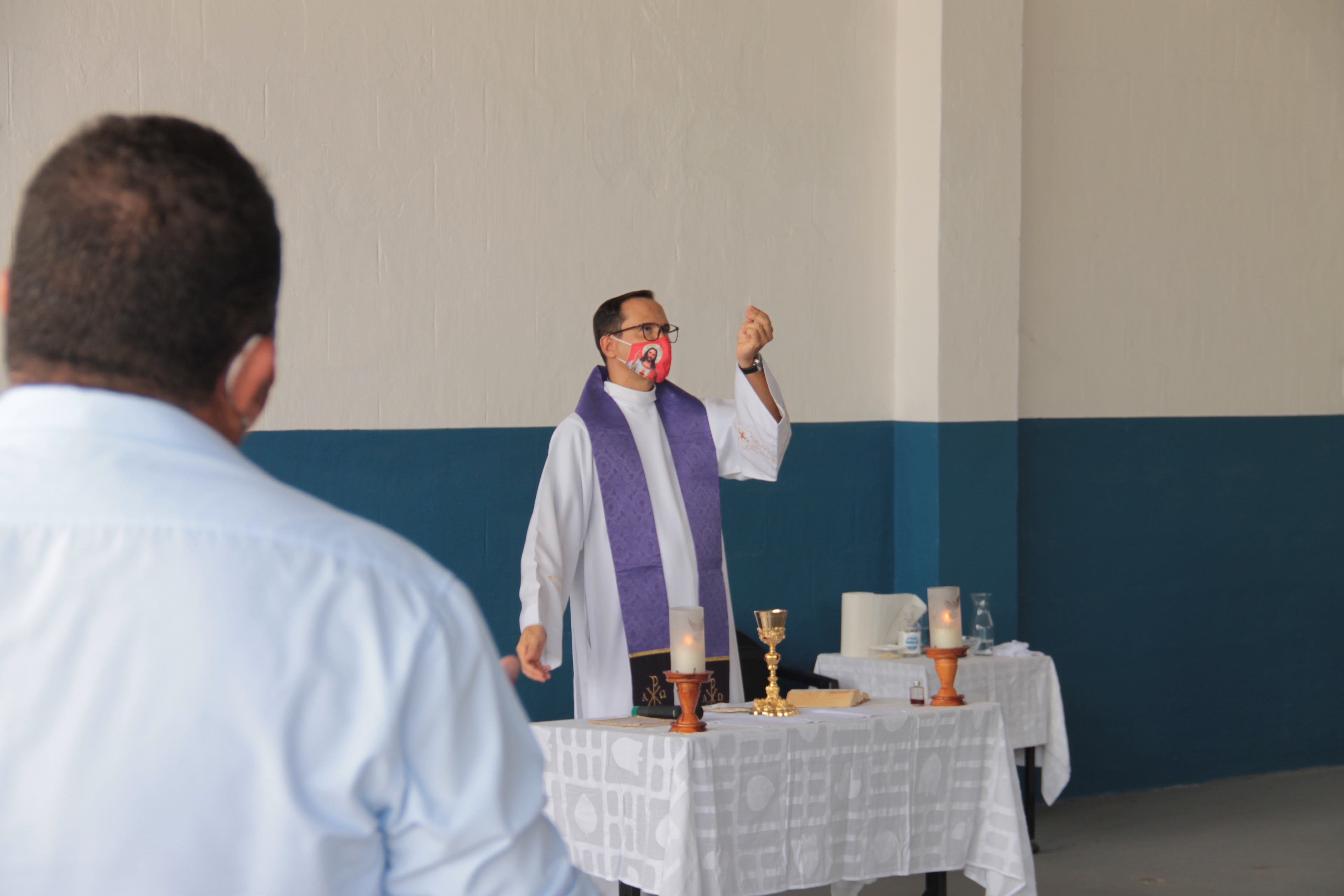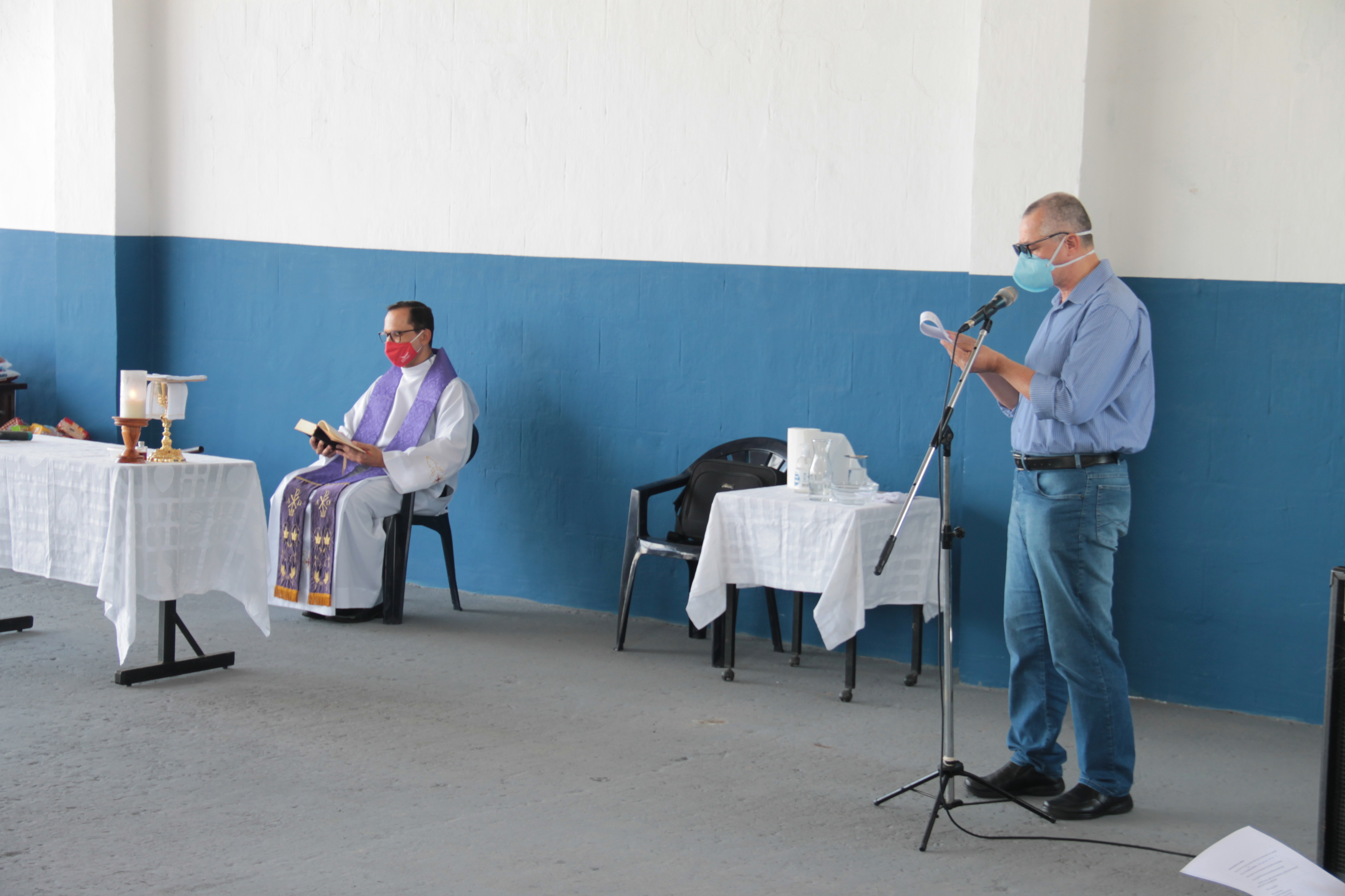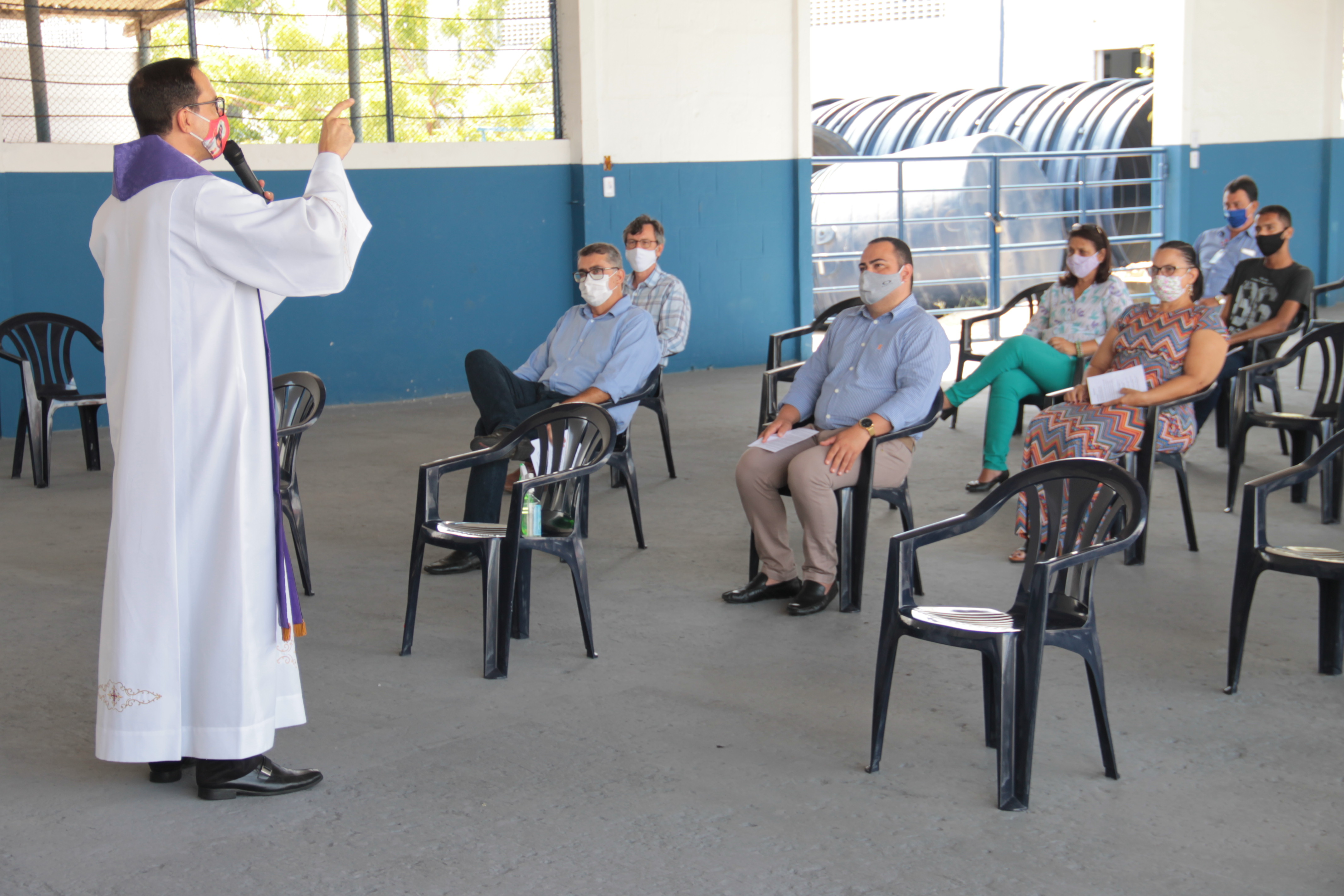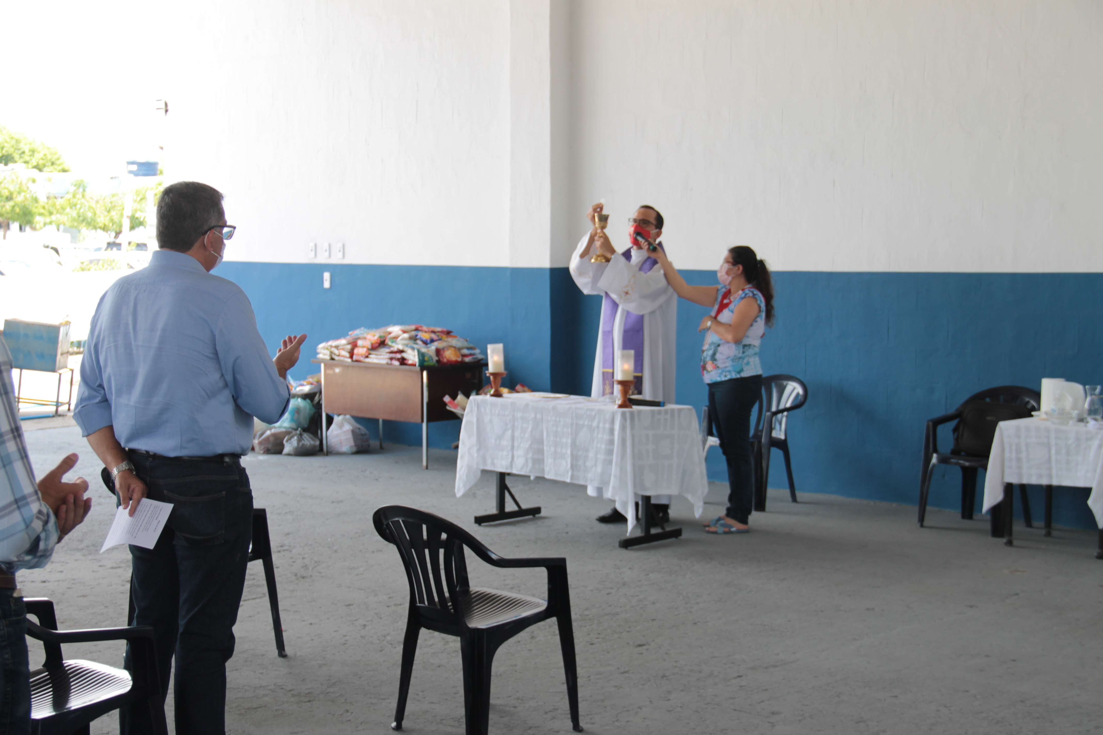 Realizada na última sexta-feira (18), a tradicional Missa de Natal na Cohidro marcou também a celebração eucarística do fim do ano dos funcionários da companhia, momento de agradecer o que foi considerado benção em 2020 e rogar por dias melhores em 2021. Foi aproveitado o amplo espaço da recém revitalizada garagem da sede da empresa em Aracaju, para dispor altar e cadeiras com a distância exigida, álcool 70% – via totem gentilmente cedido pelo Sindicato dos Trabalhadores na Indústria da Purificação e Distribuição de Água (Sindisan) – e a exigência do uso de máscaras respiratórias; conforme os critérios de prevenção ao coronavírus.