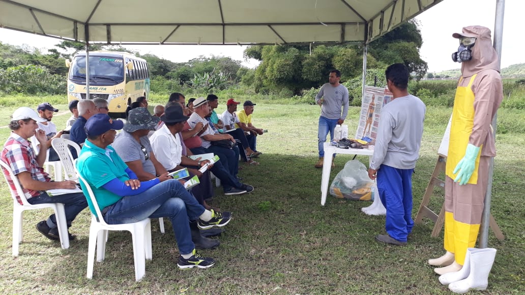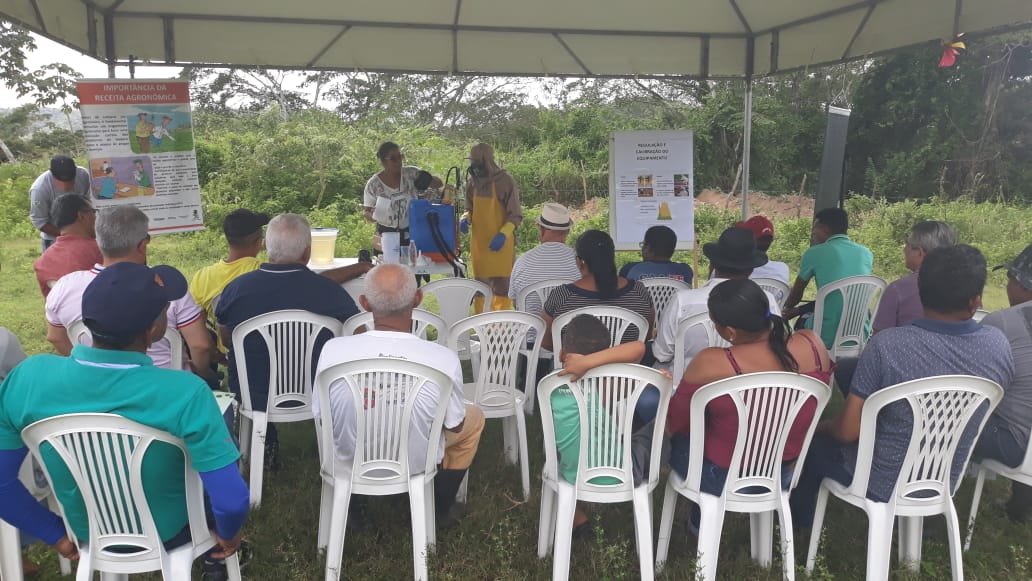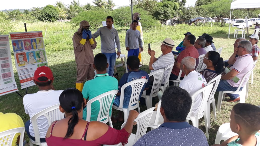 Na quarta (03), quinta e sexta-feira, os dias de campo sobre o Uso Adequado de Agrotóxicos se foram aplicados nos dois primeiros dias no Perímetro Irrigado da Ribeira, administrado pela Companhia de Desenvolvimento de Recursos Hídricos e Irrigação de Sergipe – Cohidro em Itabaiana, e no último, no Perímetro Irrigado Jacarecica II, no assentamento de reforma agrária Mario Lago, em Riachuelo. Concluem um curso de três etapas elaborado pelo ‘Programa Águas de Sergipe’ [PAS], preparando o produtor rural para lidar com agroquímicos sem provocar risco à própria saúde, de sua família, de quem consome os alimentos que eles produzem; além da degradação ao meio ambiente. A cartilha educativa Produtos Alternativos para o Controle de Pragas e Doenças na Agricultura, publicada pela Cohidro, foi distribuída aos agricultores.