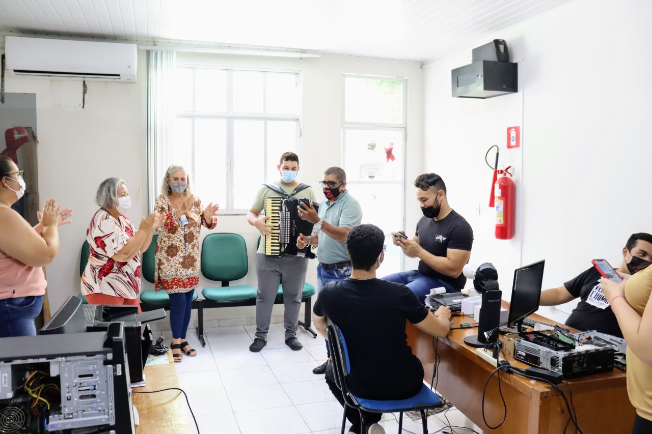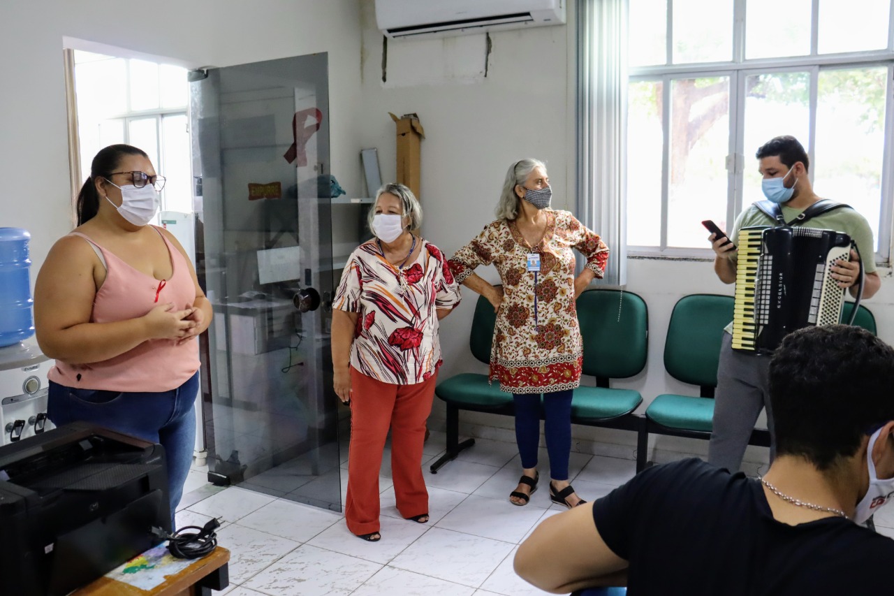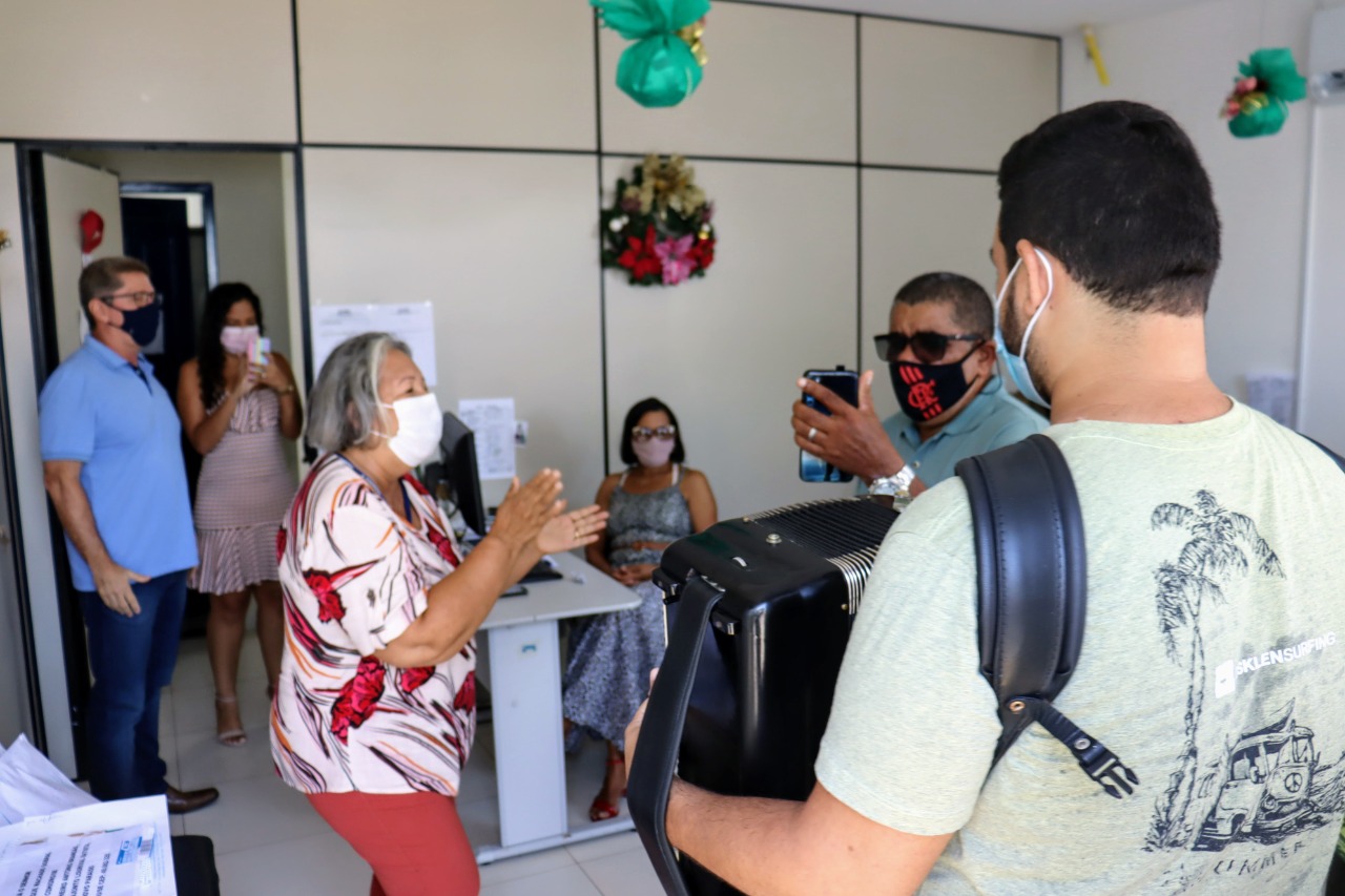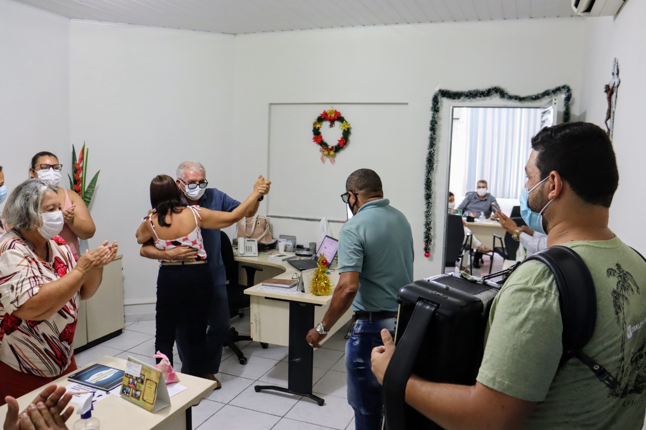 A equipe da busca ativa, que saiu de sala em sala, era formada por Eline Azevedo (Dibem), Cândida Santana (Dirhu), Luciene Pinto (Ouvidoria), Valduicio dos Santos (cantor Capunga, Gelog) e Paulo Ricardo (sanfoneiro, Ascom). Estes dois últimos, ainda na quinta-feira (16), também animaram a Confraternização de Natal com o tradicional Papai Noel do servidor Clóvis, o Sonhador. O bom velhinho trouxe quitutes, guaraná, muito picolé e sorteou presentes entre os funcionários participantes.