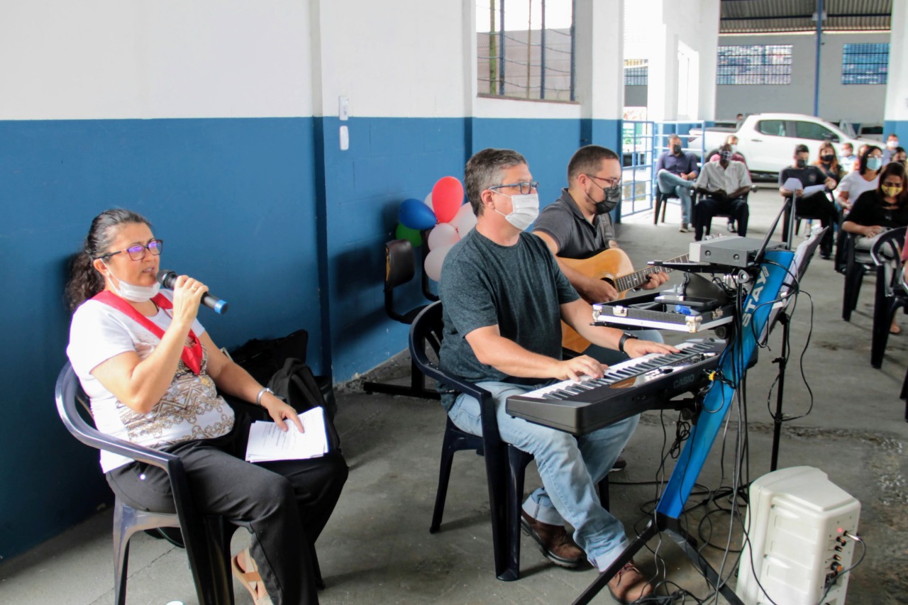 Na sexta-feira (17), os funcionários da Cohidro participaram de uma Missa de Natal, na sede administrativa em Aracaju. Celebrada pelo padre Flávio Eduardo, da paróquia São Lucas, do Bairro Coroa do Meio em Aracaju, a consagração de fé foi organizada com a precaução do distanciamento entre as cadeiras, uso de máscaras e o álcool 70%, para prevenir a Covid-19. No dia anterior, teve Confraternização de Natal e houve também uma ‘busca ativa musical’, de sala em sala, convidando os funcionários a participarem da missa e da campanha Natal Solidário da Cohidro.