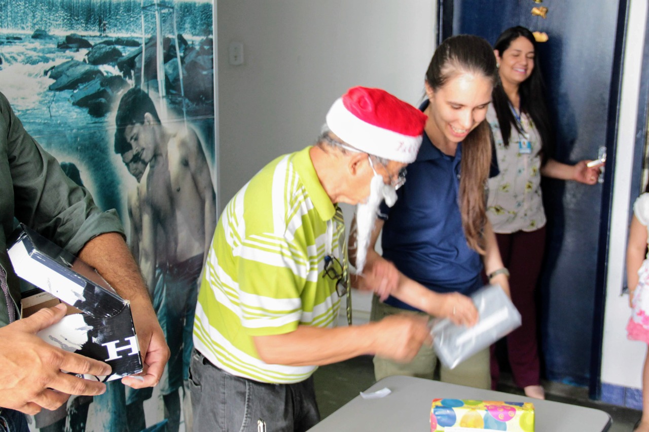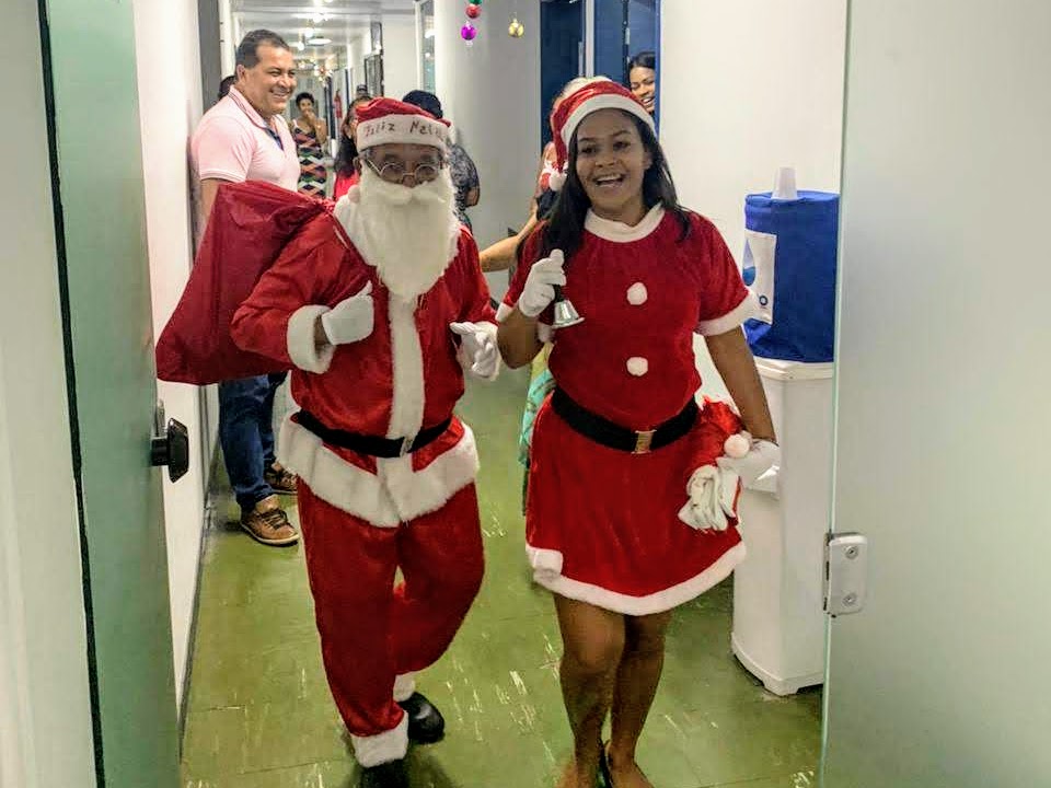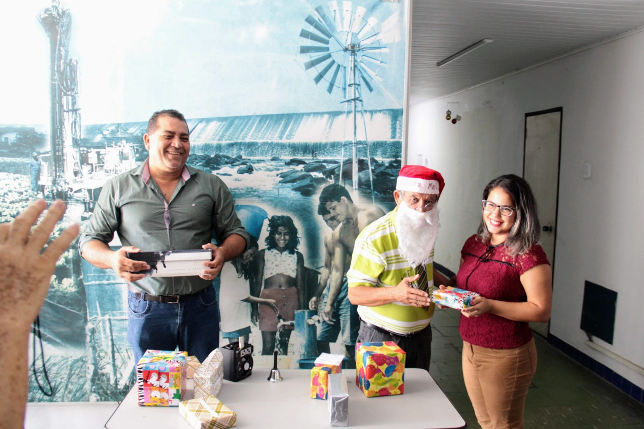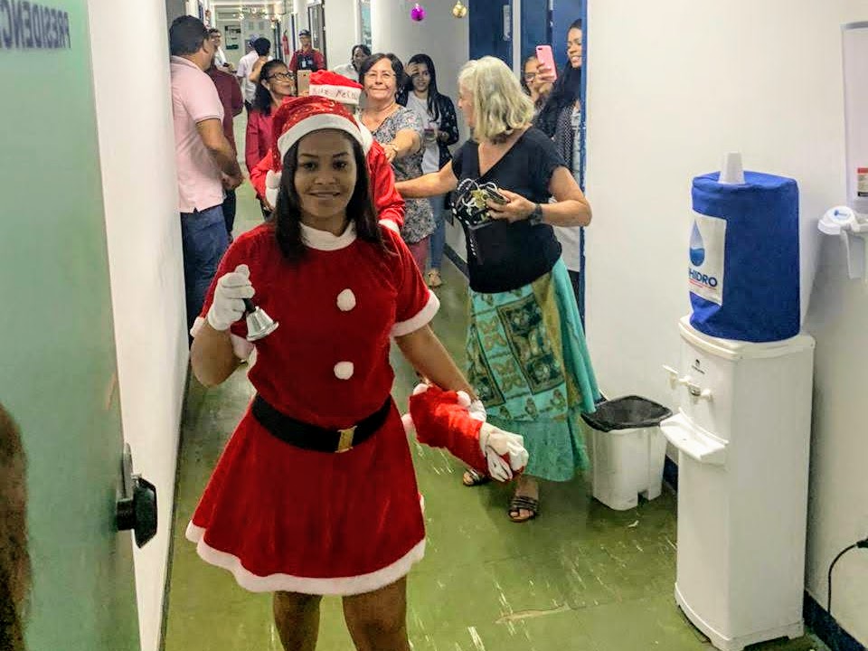 Sexta, o Bom Velhinho continuou a distribuição de presentes, desta vez contemplando os estagiários e jovens aprendizes. Nessa missão, Papai Noel convocou o diretor Administrativo e Financeiro, Jean Nascimento, como ajudante.
