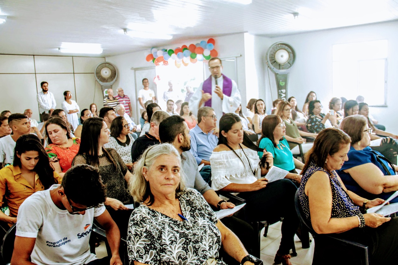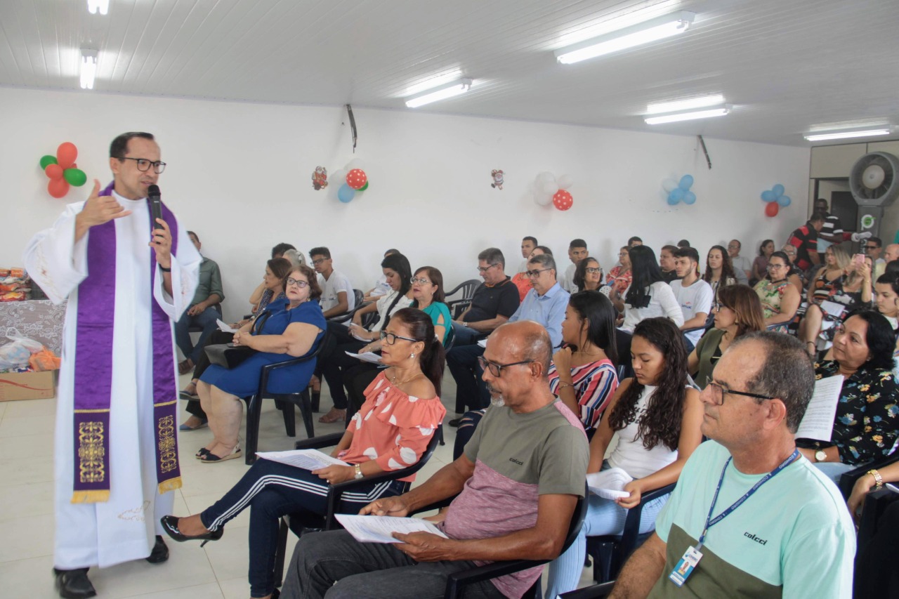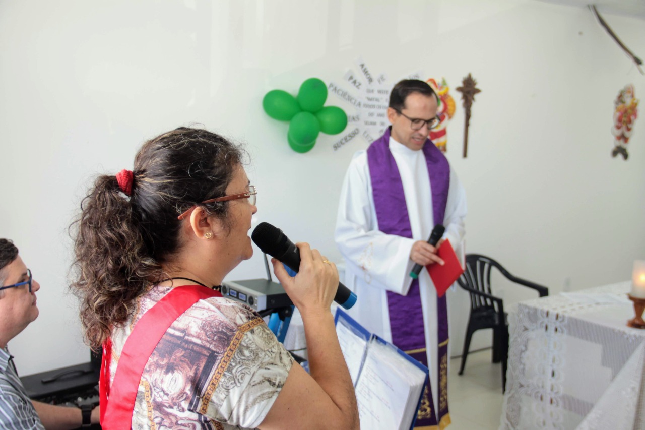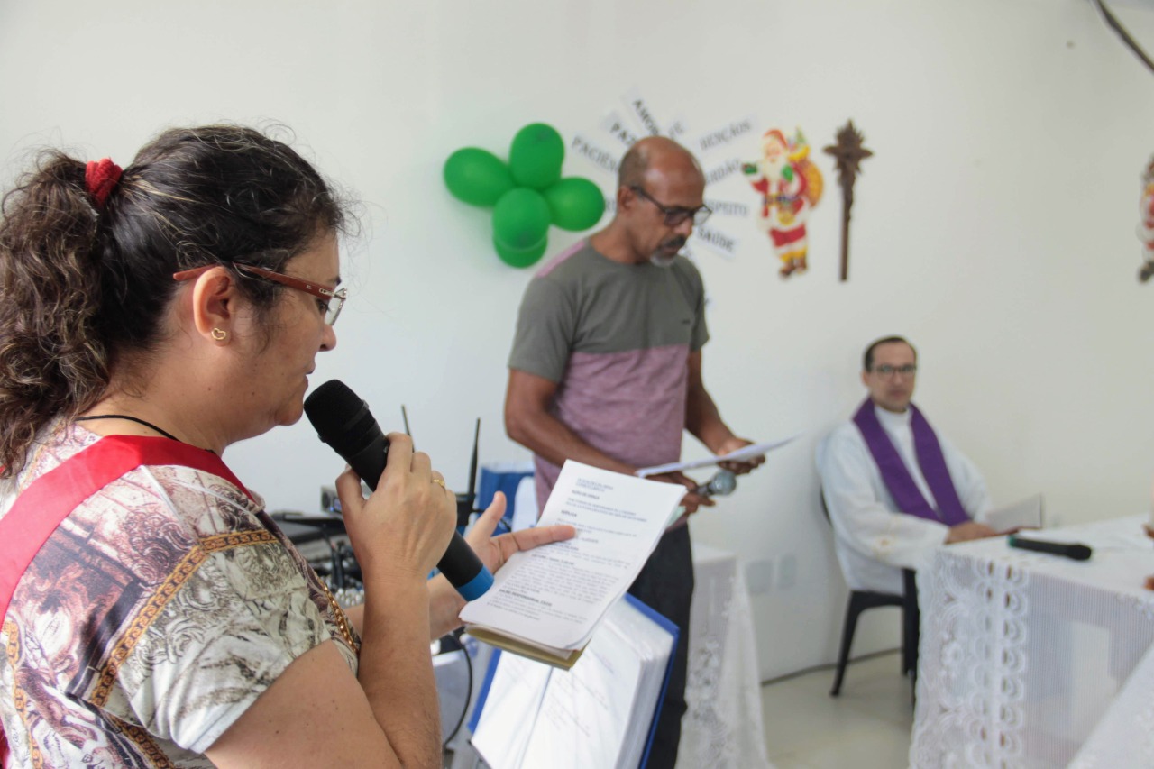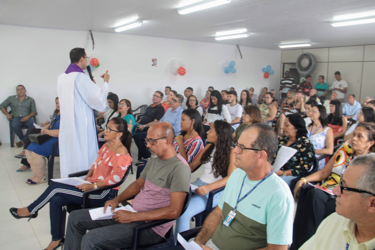 O final do expediente da sexta-feira (20), foi consagrado pela Missa de Natal, celebrada pelo padre Flávio Eduardo, da paróquia São Lucas, na Coroa do Meio, com o acompanhamento musical da dupla Fábio e Suerda. Foi ocasião para os funcionários fazerem as últimas entregas de alimentos à Campanha de Solidariedade organizada pela Divisão de Desenvolvimento Humano da Gerência de Recursos Humanos [DIDHU/GERHU]. Não-perecíveis que foram somados aos alimentos in natura também doados pelos agricultores irrigantes dos perímetros irrigados administrados pela Cohidro. Todos esses donativos foram inteiramente entregues à instituição beneficente Oratório de Bebê, que oferece às crianças e adolescentes atendimento assistencial, psicológico, médico e educacional.
