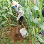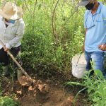 Técnico em Agropecuária da Cohidro, José Américo explica como é feita a coleta da amostra de solo. “Primeiro, escolhe um balde e uma ‘enxadeca’. Depois, tem que limpar uma área e faz uma cova em formato de V, com cerca de um palmo (22cm) de profundidade, para assim retirar a amostra de uma das paredes da cova, tirando uma fatia de terra de cima a baixo. O local só não pode ter formigueiro, ter recebido esterco ou ser ao redor de casa, pois mascara a amostra”. O técnico orienta ainda que a quantidade de amostras dependerá do tamanho da área, tendo como referência de 10 à 15 coletas por hectare. “Depois, mistura todas as coletas e limpa [tirando pedras, raízes, galhos e folhas], deixando apenas a terra. Finalmente, desta terra, escolhe cerca de 500g e entrega para a Cohidro, em uma sacola limpa e bem amarrada”, complementa José Américo. Após o recebimento, a Cohidro enviará as amostras para a Emdagro.