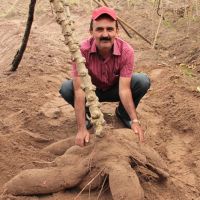 Soma de água farta para irrigação com uma adubação rica em nutrientes está fazendo com que o agricultor Adalberto dos Santos colha raízes de macaxeira que impressionam, devido ao tamanho fora padrão da espécie vegetal, em sua plantação, com túberos que podem pesar até 15 quilos e ter 60 centímetros de comprimento. Ele é um dos irrigantes do Perímetro Irrigado Jacarecica II, administrado pela Companhia de Desenvolvimento de Recursos Hídricos e Irrigação de Sergipe (Cohidro), no município de Malhador.