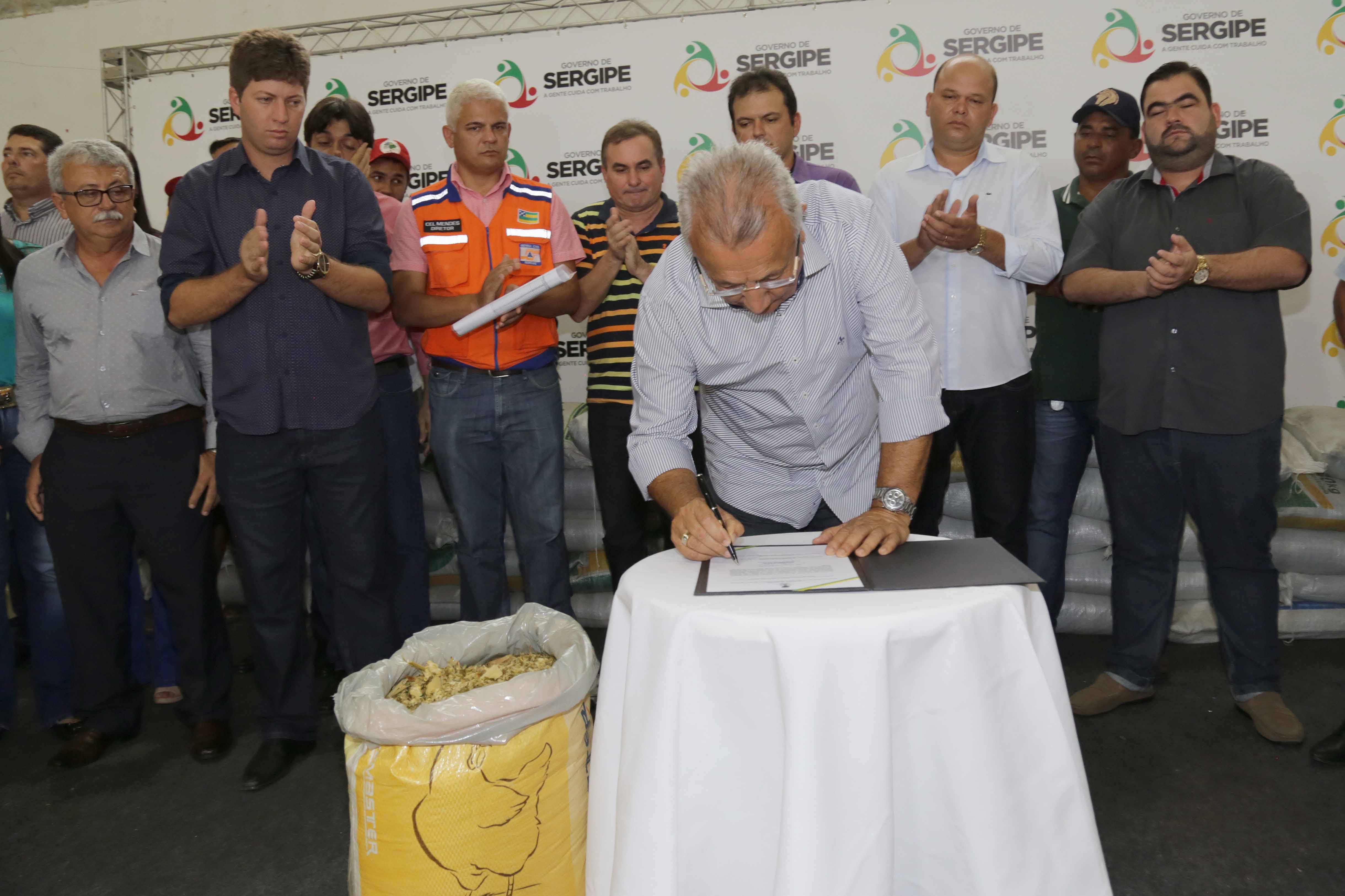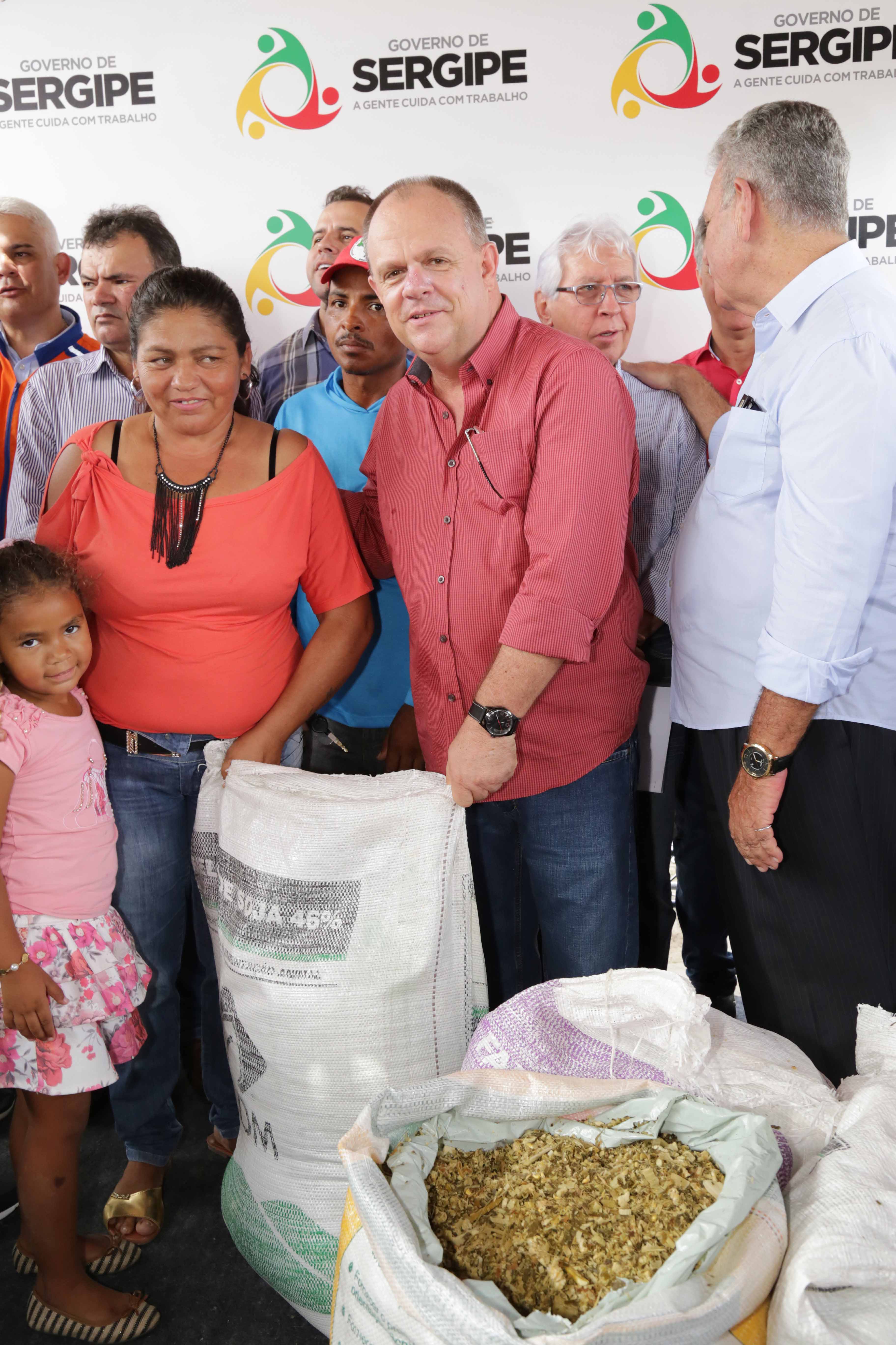 Nesta quinta-feira, 11, o governador Jackson Barreto deu prosseguimento às ações de valorização dos agricultores sergipanos e de combate aos efeitos da seca no estado. Nos municípios de Porto da Folha e Monte Alegre, foram entregues 1.073,9 toneladas de material forrageiro a 1.166 produtores familiares, um investimento de R$ 804.223,04; assinado termo de adesão estadual ao programa Garantia Safra, e entregues 159 títulos de regularização fundiária.