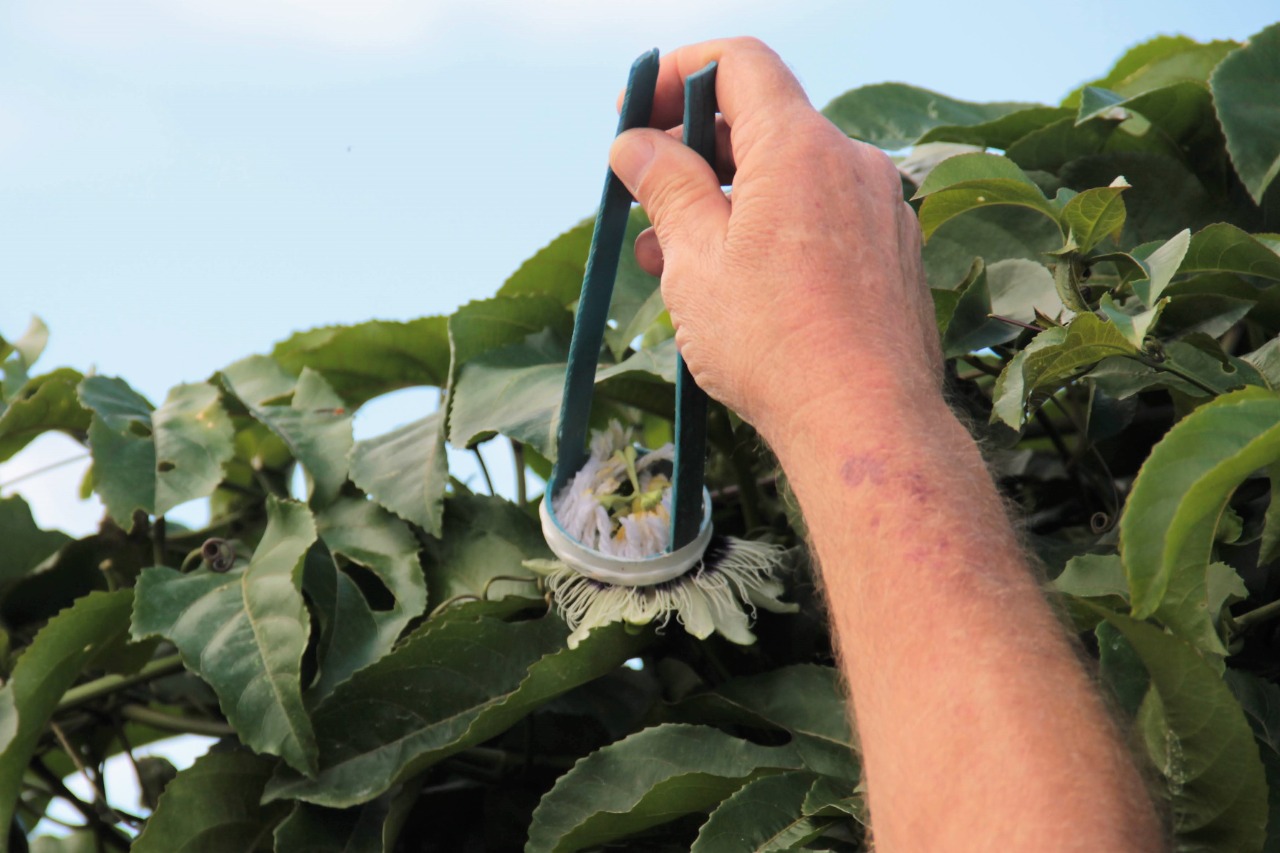 Já no começo da plantação, o senhor Humberto aperfeiçoou um instrumento de polinização das flores do maracujazeiro, usando uma escova em forma de anel, copiando o trabalho que na natureza só consegue ser feito por alguns poucos tipos de insetos. “Aquela polinização deu muito certo. Dá um resultado melhor do que fazer com a mão”, reforçou o gerente do lote que explica que existiram outros cuidados para que a plantação tenha prosperado. “Temos um grupo, com o engenheiro agrônomo e técnico agrícola, que determina um programa mensal de pulverização. Mas a gente faz uma vistoria diária na área, e assim que detectamos qualquer problema na planta ou no fruto, a gente aplica outra pulverização com recomendações também do nosso engenheiro agrônomo, e assim a gente vai corrigindo”, finaliza o gerente do lote empresarial.