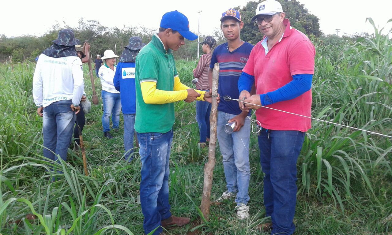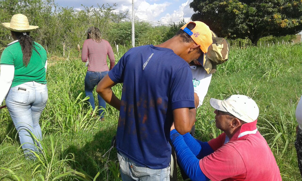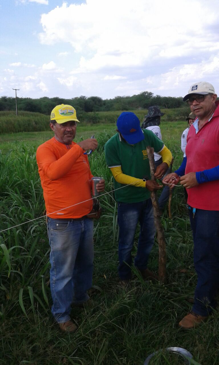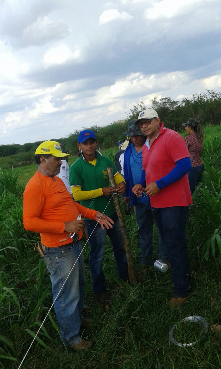 Na quinta-feira, os técnicos agrícolas da em Canindé, Antônio Roberto Ramos, José Coelho e Edmilson, realizaram atividades de campo desenvolvidas no lote 4SO, do Setor 06, do agricultor Everaldo Mariano. A intenção era a adaptação da pastagem iniciada pelo produtor, ao sistema de piquetes do Balde Cheio, com a instalação de cerca de arame eletrificada.