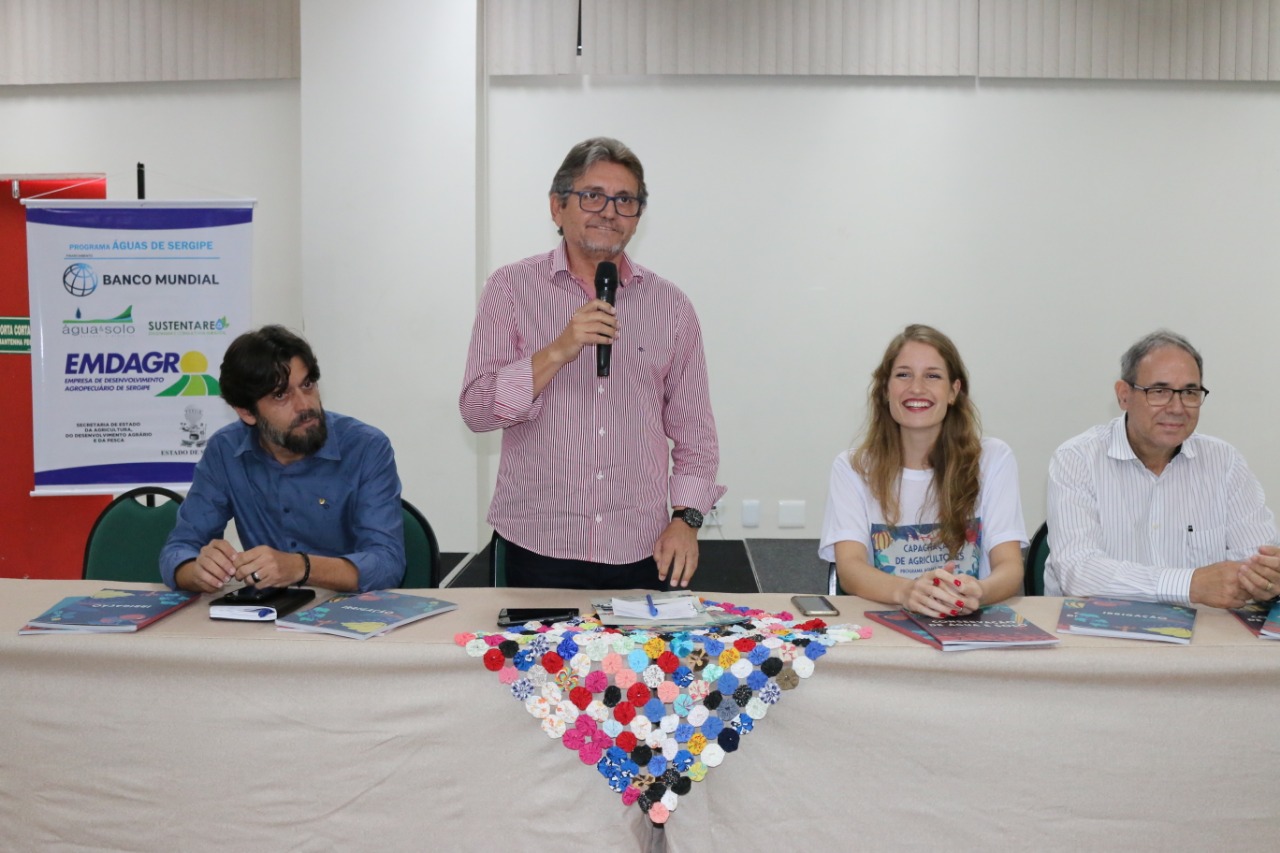 O presidente da Emdagro, Jefferson Feitoza de Carvalho, fez a abertura do encontro destacando todos os esforços que a empresa empregou para a consecução do que lhe coube dentro do Programa Águas de Sergipe. “Todas as metas foram superadas. Inicialmente, estava prevista a capacitação de 1000 agricultores nas áreas de agroecologia, manejo de água e solo e irrigação, e nós ultrapassamos essa meta”, comemorou ele.