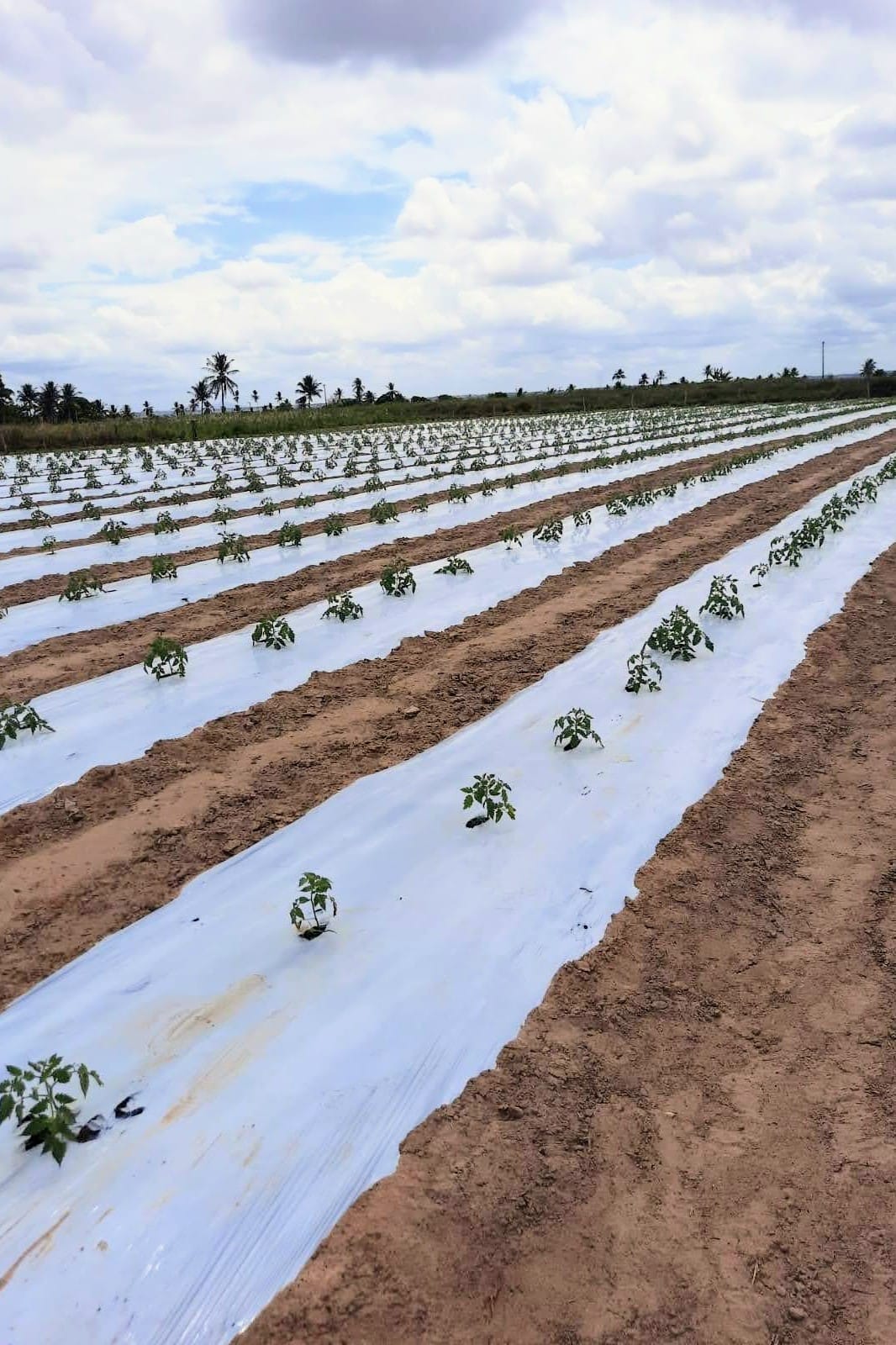 “Faz a leira antes de colocar o ‘mulching’; com uma adubação de fundação e o sistema de irrigação, que é o gotejo. É uma tecnologia que deu certo. Tanto para o pessoal do tomate, como o da pimenta e hoje tem plantação de quiabo usando o ‘mulching’, porque reduz a mão de obra. Você não tem problema de capinar aqui em cima, não tem mato em cima dele. Ele garante também que o tomate cresça aqui em cima e não apodreça, porque ele não tem contato com o solo”, completou o técnico Williams.