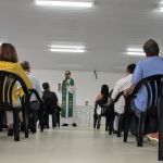 O padre Flávio Silva, da paróquia São Lucas na Coroa do Meio, nesta sexta-feira (09) celebrou na Cohidro uma missa especial em alusão ao Dia dos Pais, comemorado neste domingo. A celebração eucarística foi acompanhada pelas canções do casal de músicos Fabio e Suerda e organizada pelo assessor institucional Janailson Farias.