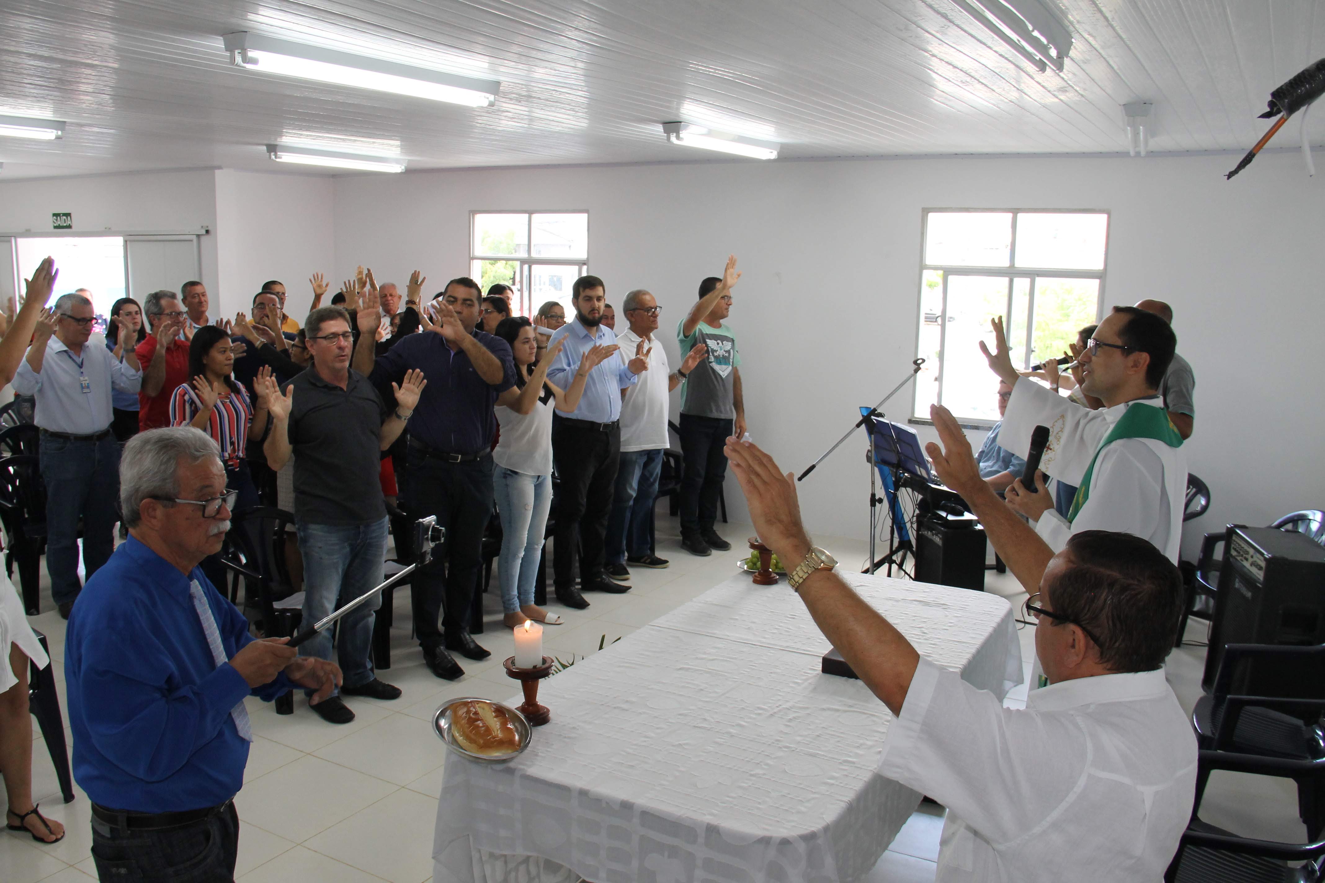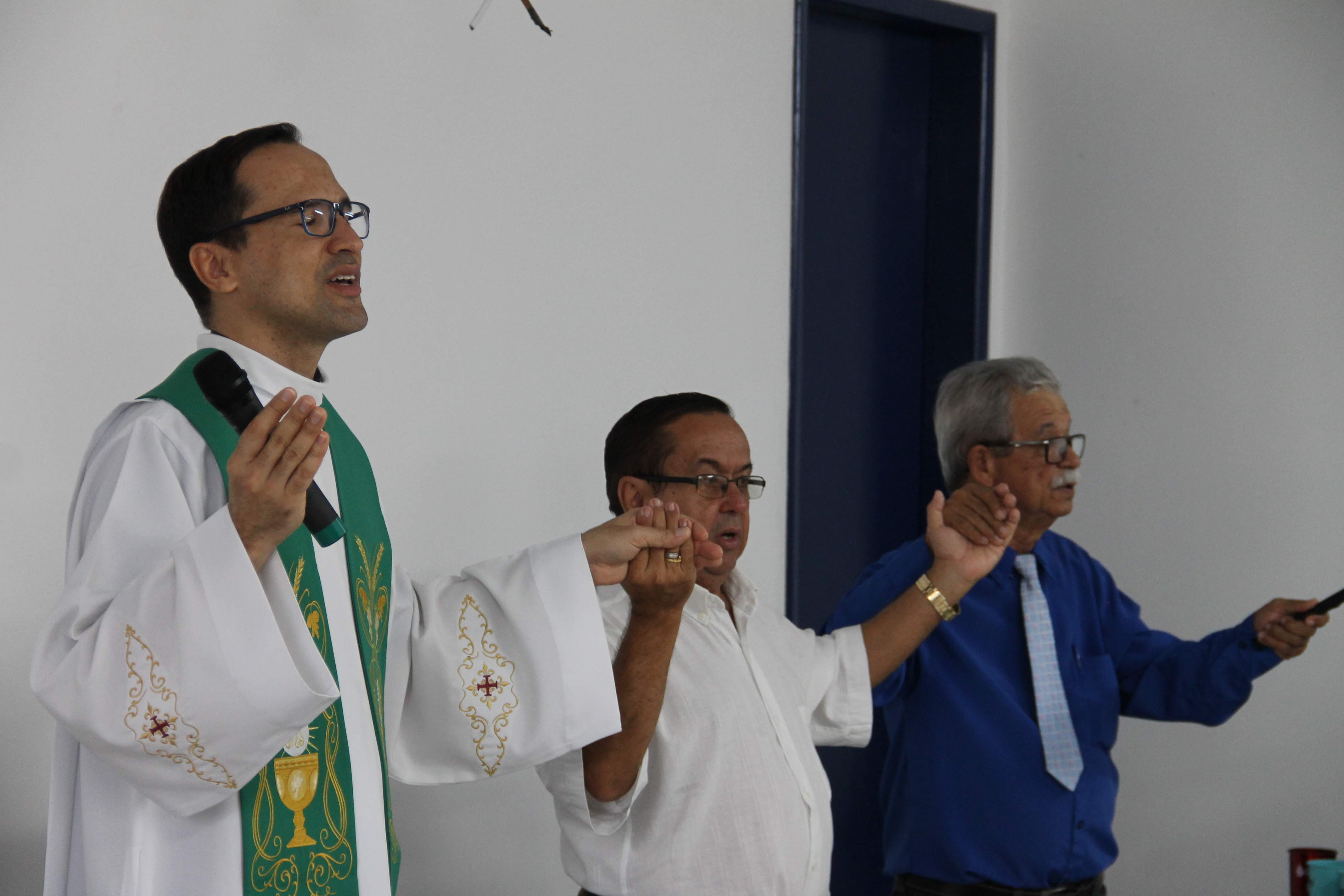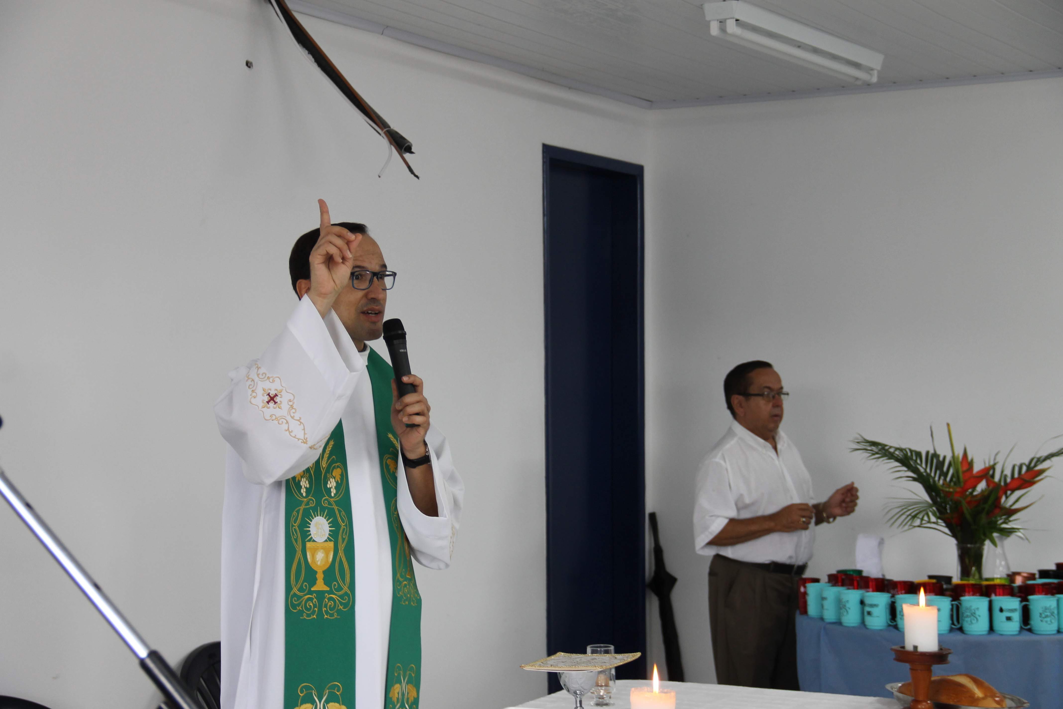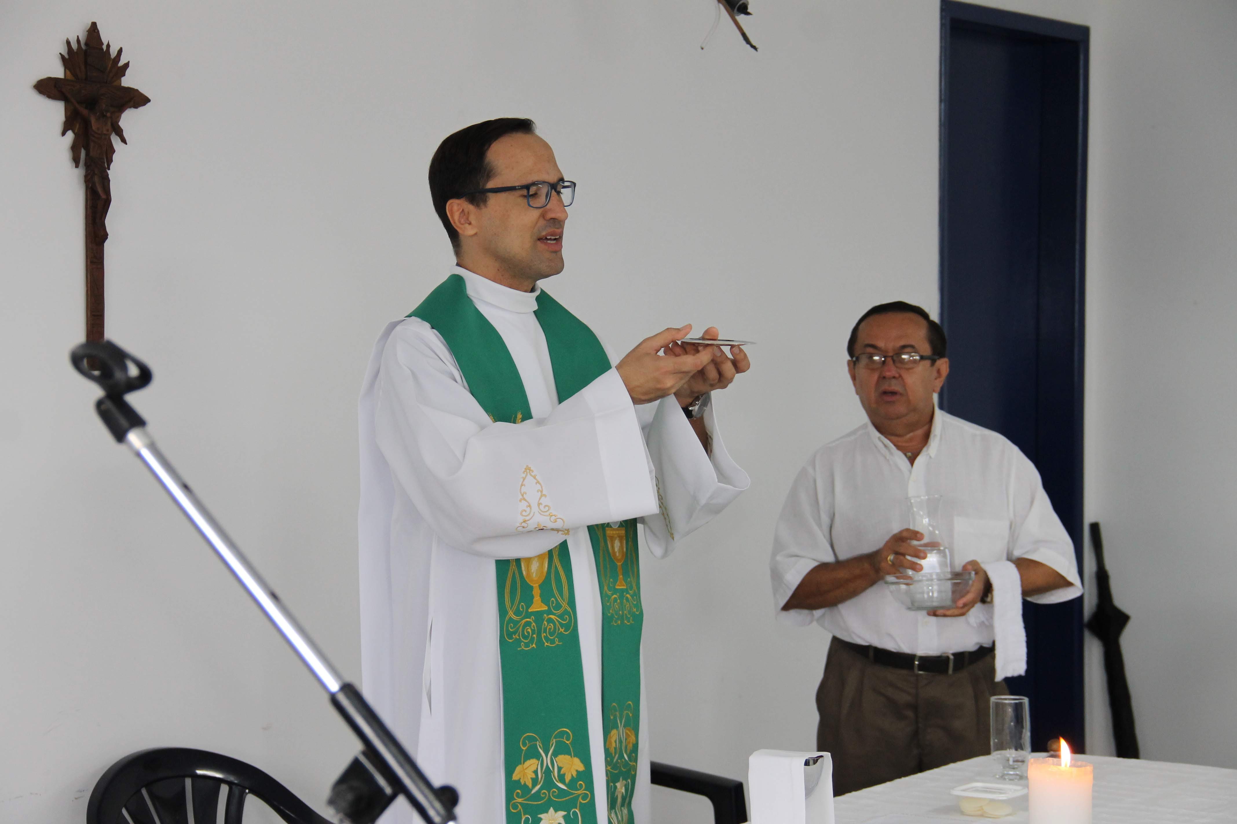 O padre Flávio Silva, da paróquia São Lucas na Coroa do Meio, nesta sexta-feira (09) celebrou na Cohidro uma missa especial em alusão ao Dia dos Pais, comemorado neste domingo. A celebração eucarística foi acompanhada pelas canções do casal de músicos Fabio e Suerda e organizada pelo assessor institucional Janailson Farias.