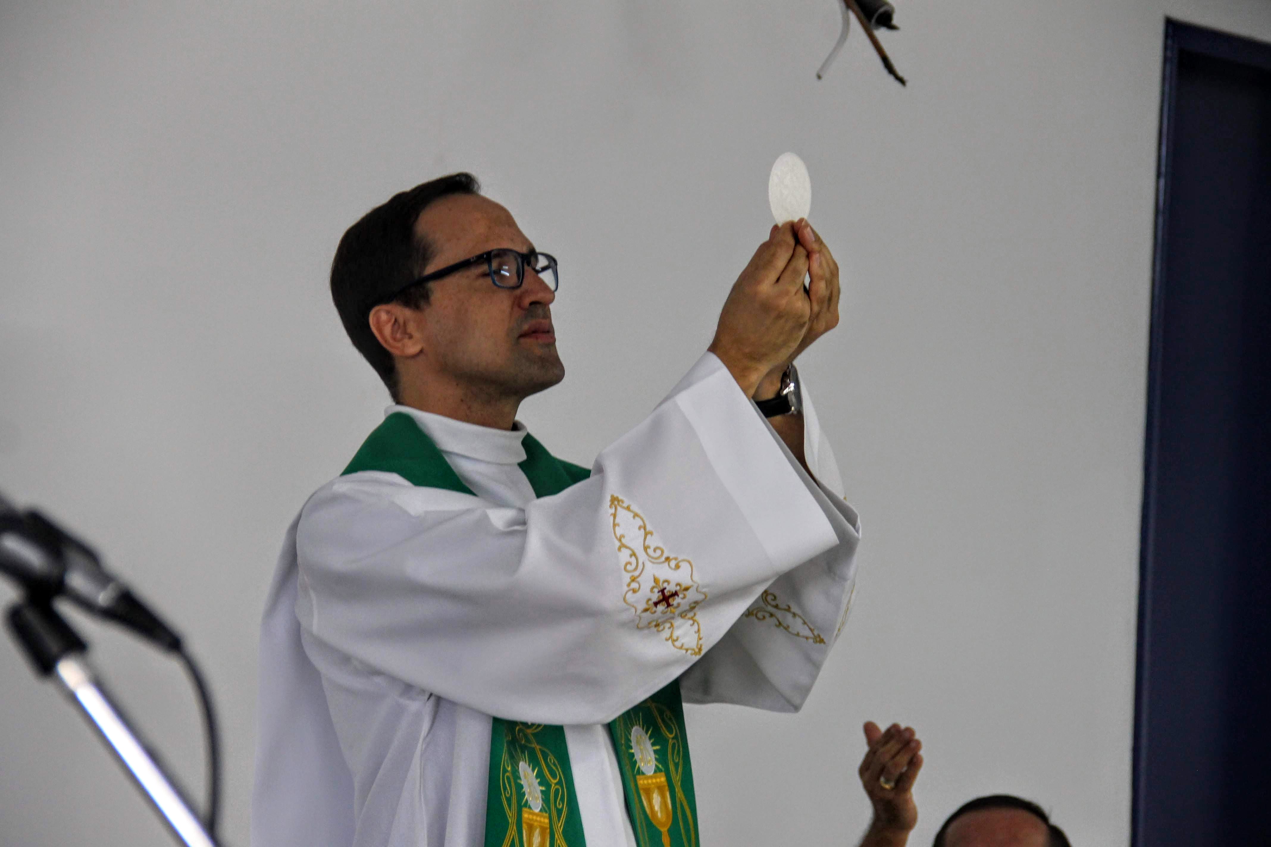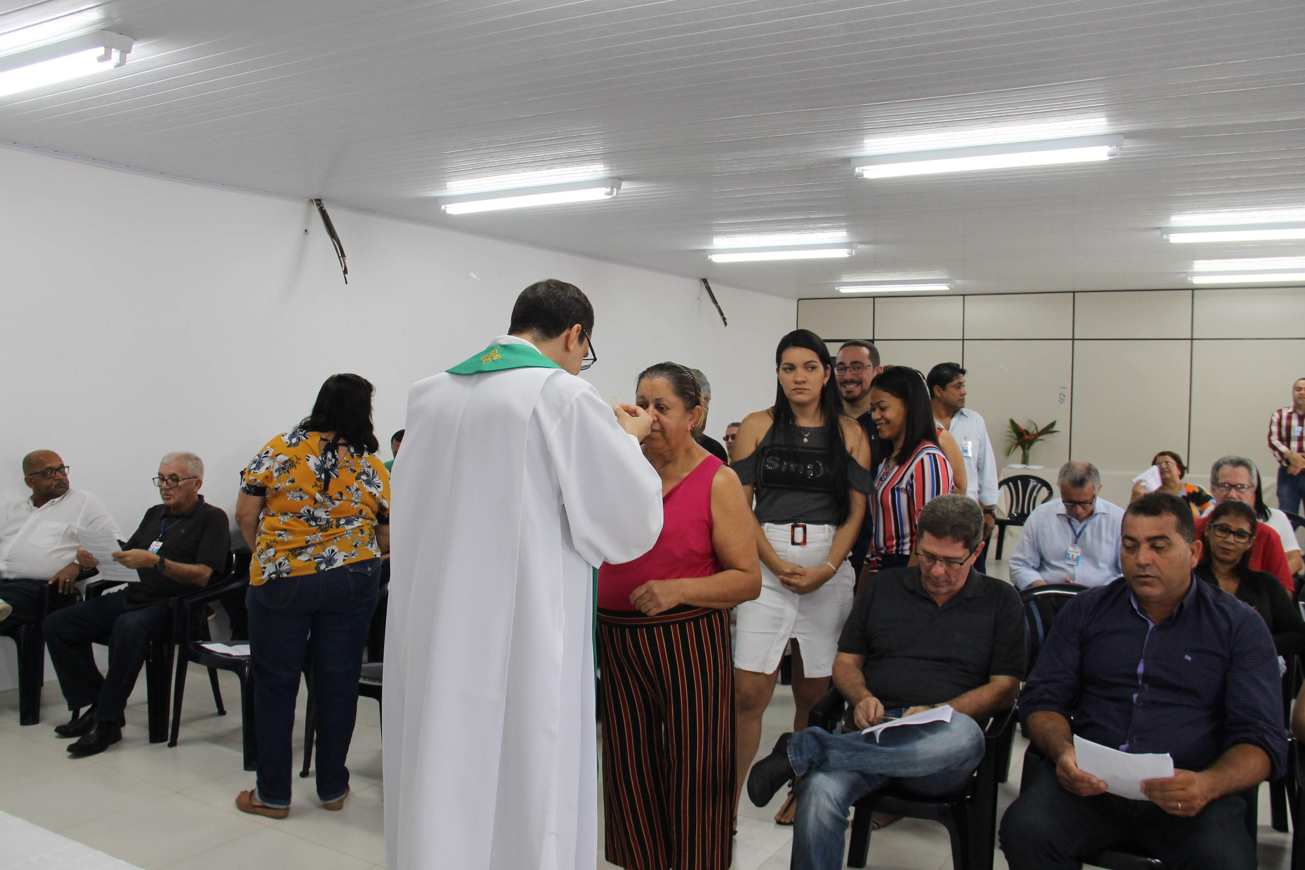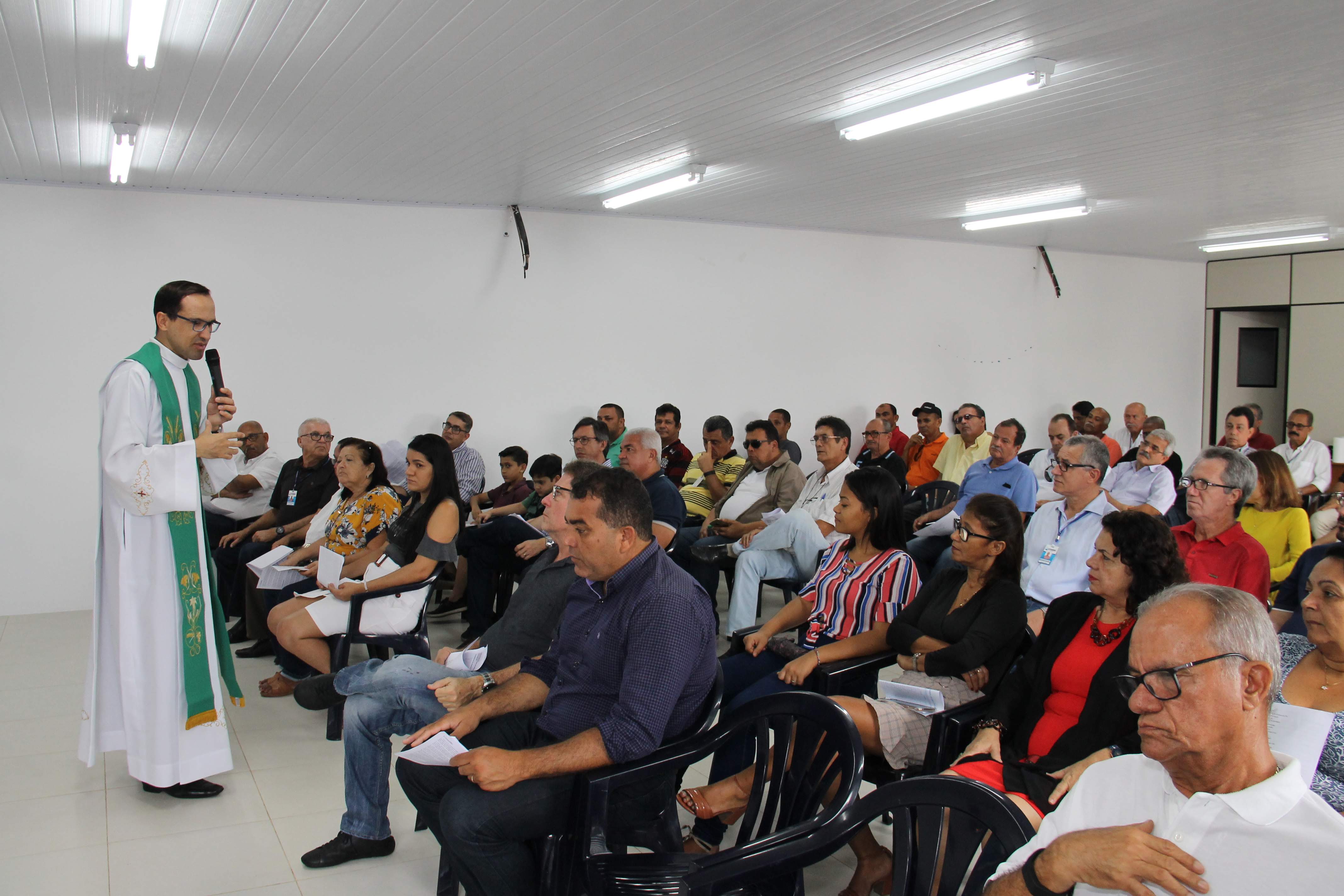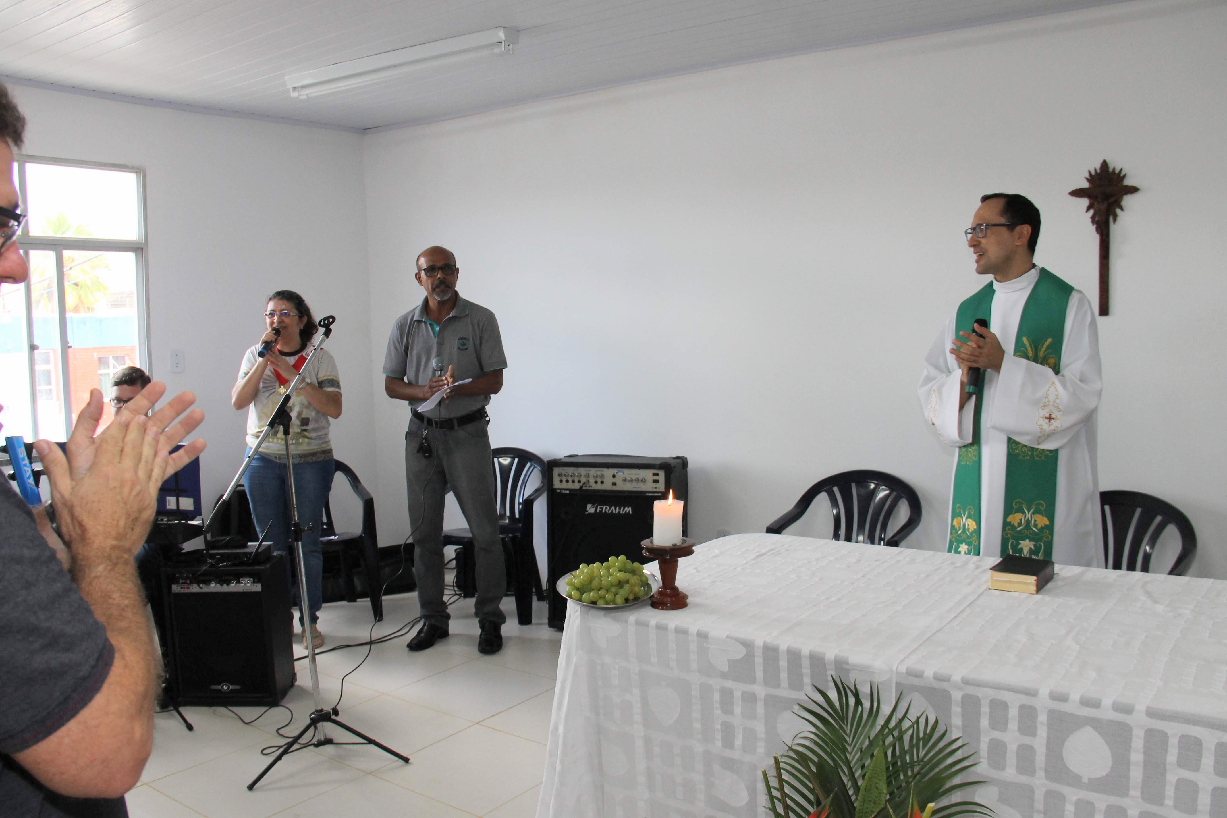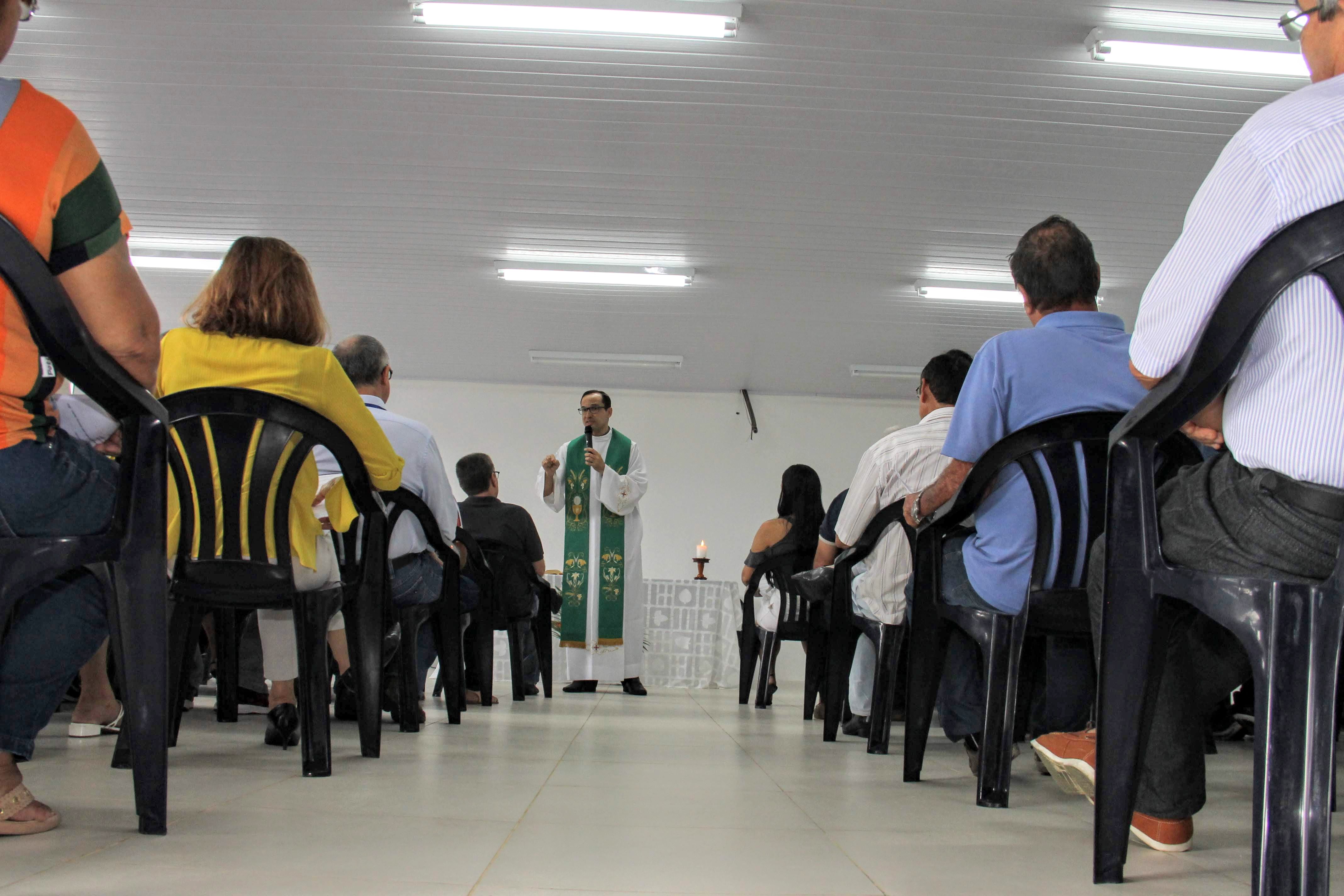 O padre Flávio Silva, da paróquia São Lucas na Coroa do Meio, nesta sexta-feira (09) celebrou na Cohidro uma missa especial em alusão ao Dia dos Pais, comemorado neste domingo. A celebração eucarística foi acompanhada pelas canções do casal de músicos Fabio e Suerda e organizada pelo assessor institucional Janailson Farias.
